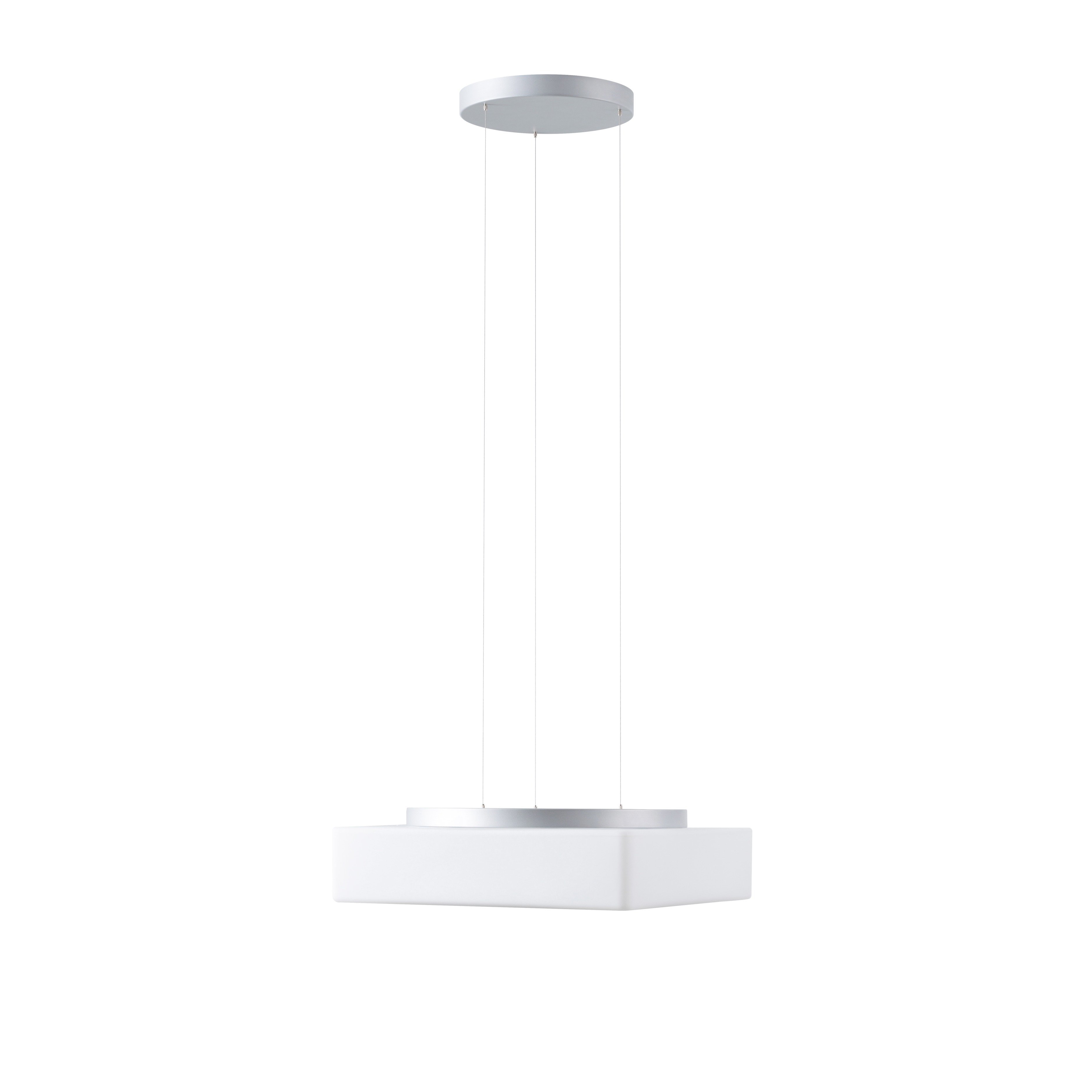 Stříbrné závěsné LED svítidlo ON/OFF a skleněné stínidlo TRIPLEX OPAL