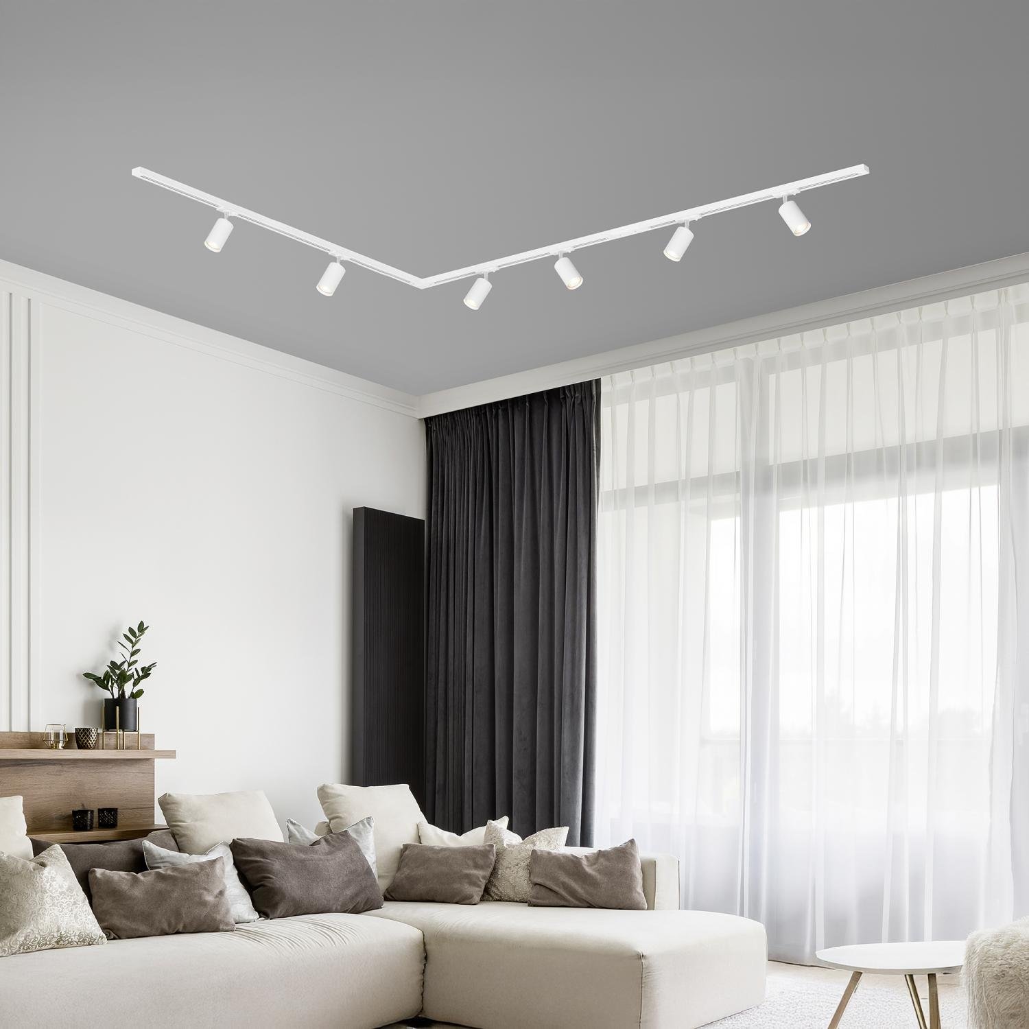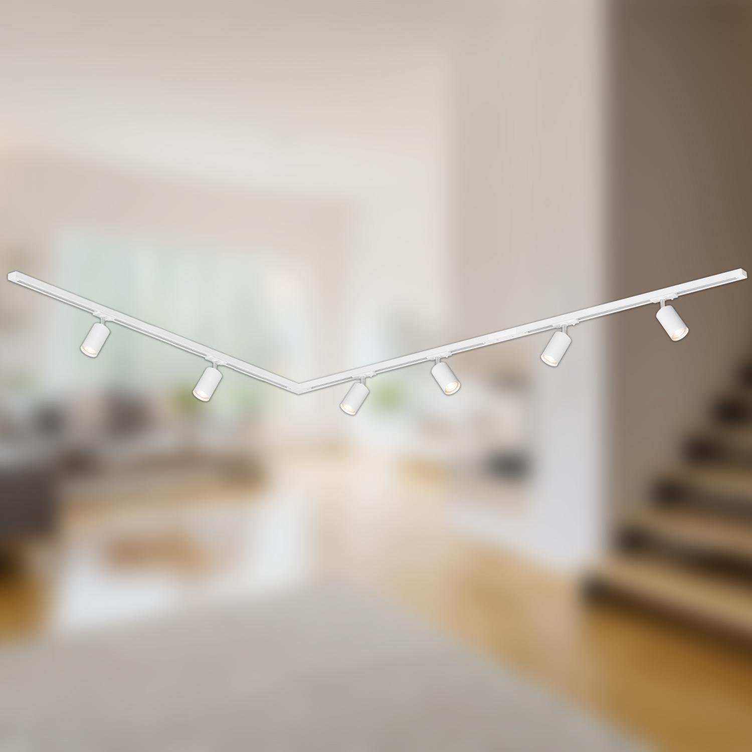 Lištový systém sada 300 cm do L – 4x 230V lišta 1-fázová, 6x spot GU10, bílá – BRILO