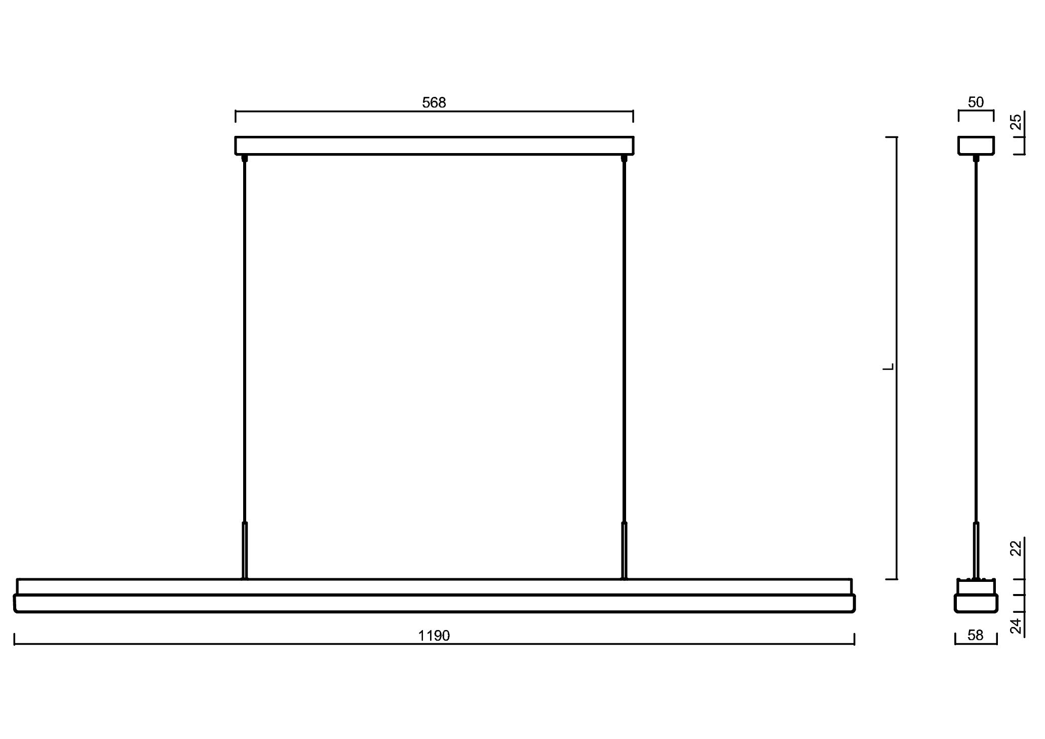 Bílé závěsné LED svítidlo ON/OFF a polykarbonátové stínidlo. Lankový závěs (SELV, bezkabelový) o délce 100 cm.