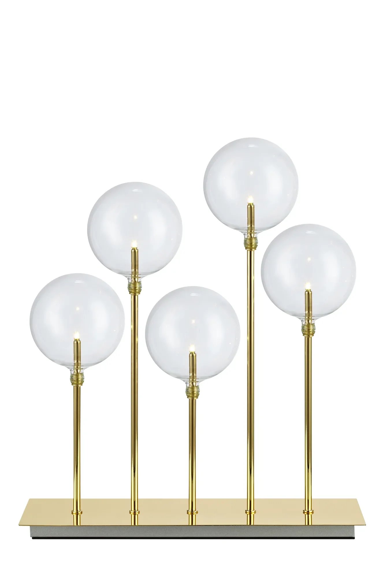 Svícen Mäster je vyroben z kvalitního zlaceného kovu a pětice kulových stínidel z čirého skla. Minimalistická kompozice na robustní základně působí vzdušně a zároveň luxusně. Zlatý odstín konstrukce se krásně doplňuje s průzračností skla a vnáší do prostoru slavnostní atmosféru, která podtrhne váš stylový interiér.