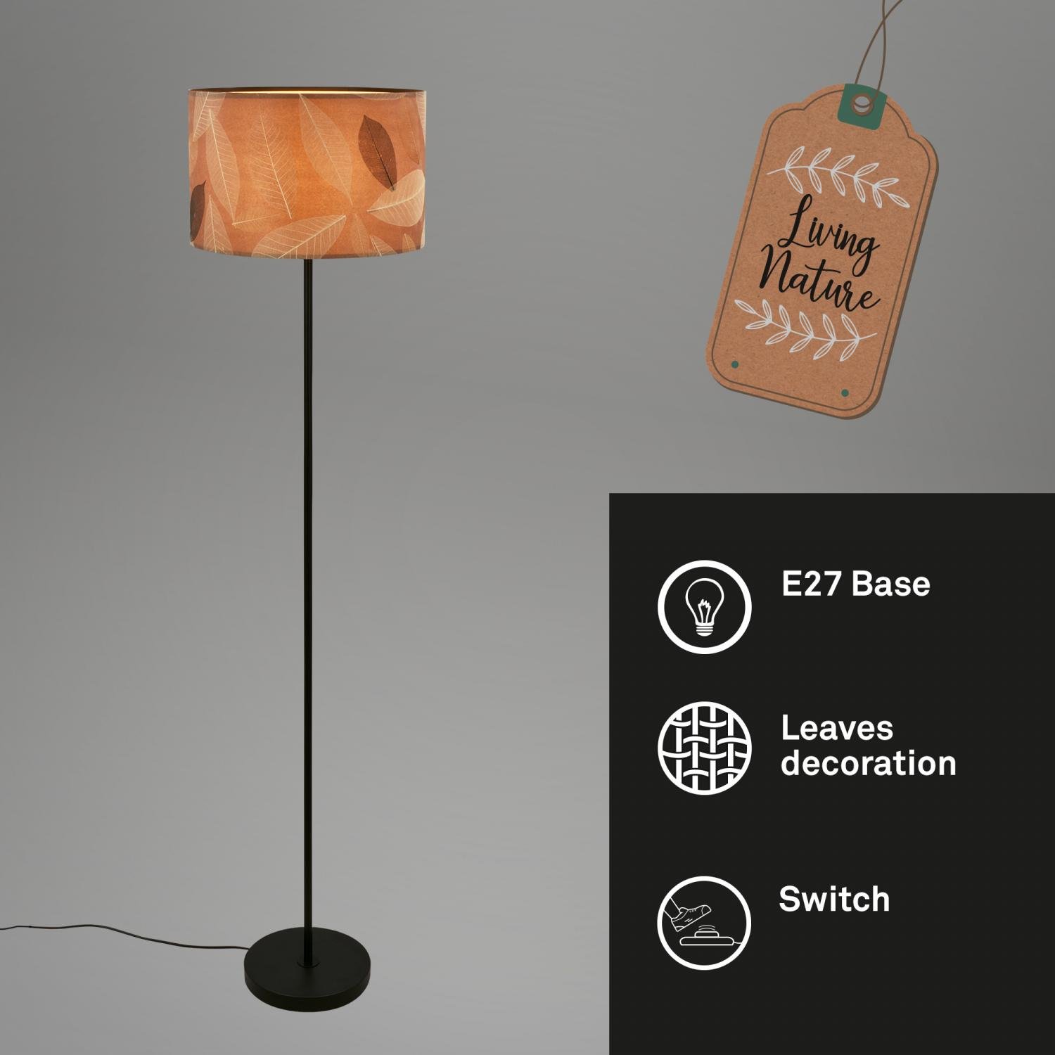 Mata stojanová lampa, dekor s lístky, nožní vypínač, kávová barva - BRILONER