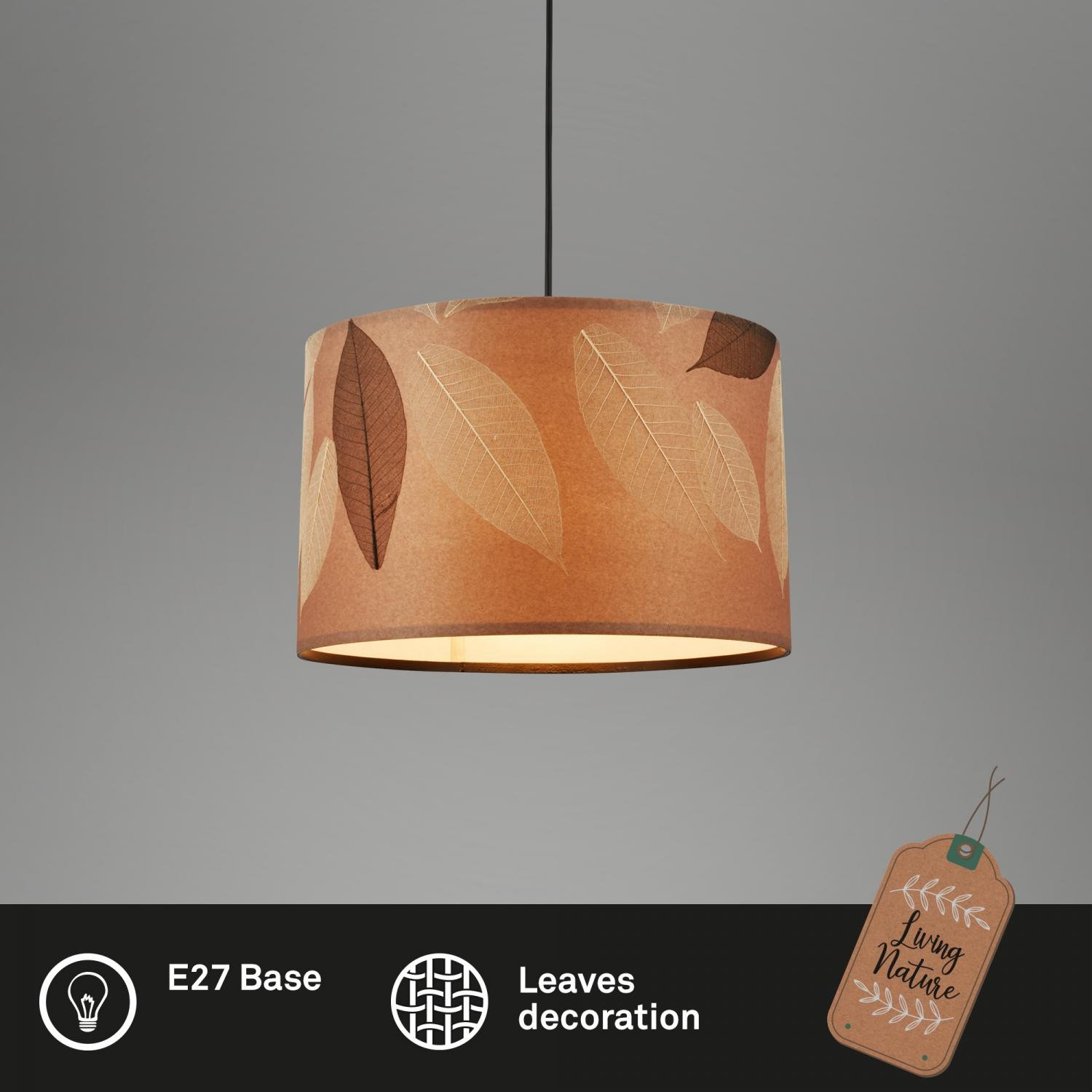 Mata závěsné svítidlo, dekor s lístky, E27 patice, kávová barva - BRILONER