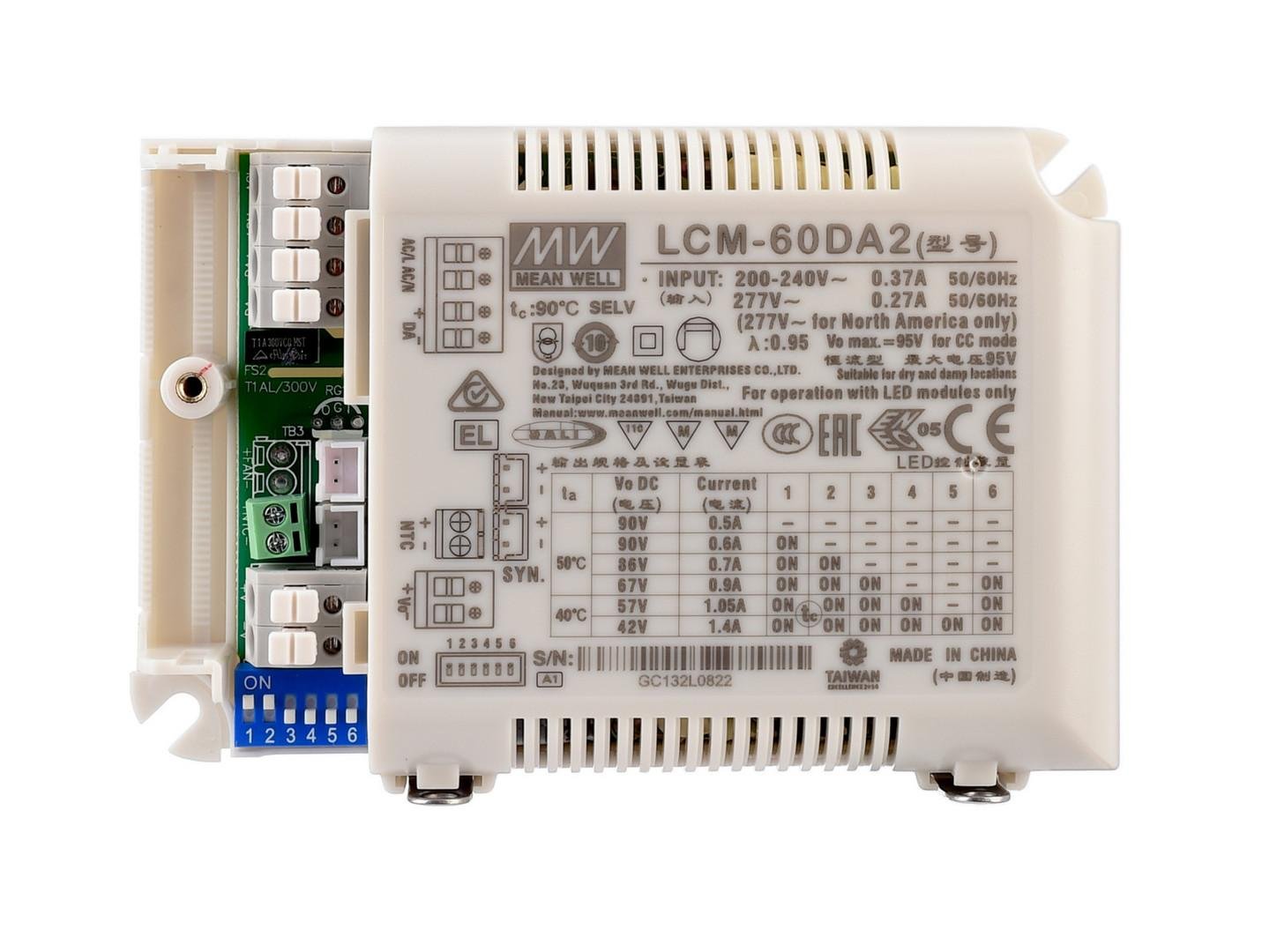 Meanwell LED-napájení DIM, Multi CC, LCM-60DA2 / DALI2 + DALI1 konstantní proud 500/600/700/900/1050/1400 mA IP20 stmívatelné 2-90V DC 60,30 W - LIGHT IMPRESSIONS