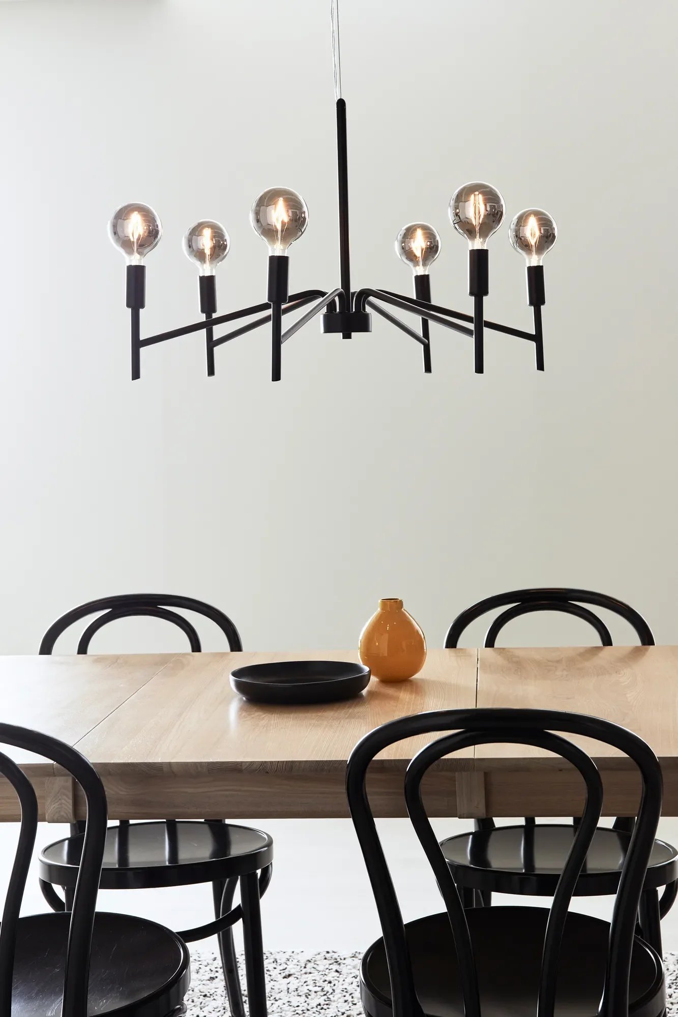 Závěsné svítidlo Markslöjd Monarch je ideální volbou nad jídelní stůl, do prostorného obývacího pokoje či reprezentativní vstupní haly. Díky šesti samostatným žárovkám můžete regulovat intenzitu světla dle potřeby výběrem vhodných LED žárovek s teplejší či studenější barvou světla. Pro maximální komfort doporučujeme kombinaci se stmívatelnými LED žárovkami a externím stmívačem (svítidlo samotné stmívač neobsahuje).