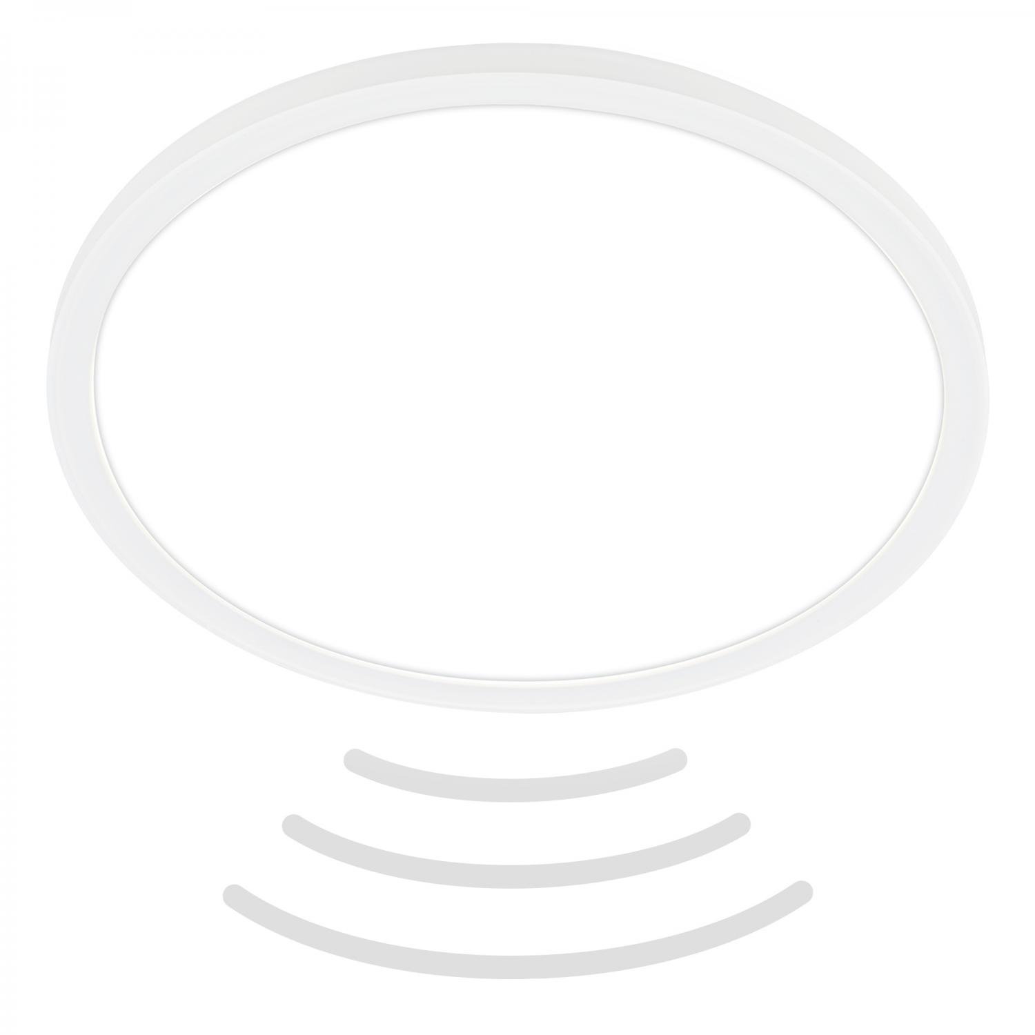 Move LED stropní svítidlo IP44, přímé a nepřímé osvětlení, pohybové čidlo, kruhové 29 cm, bílé – BRILO