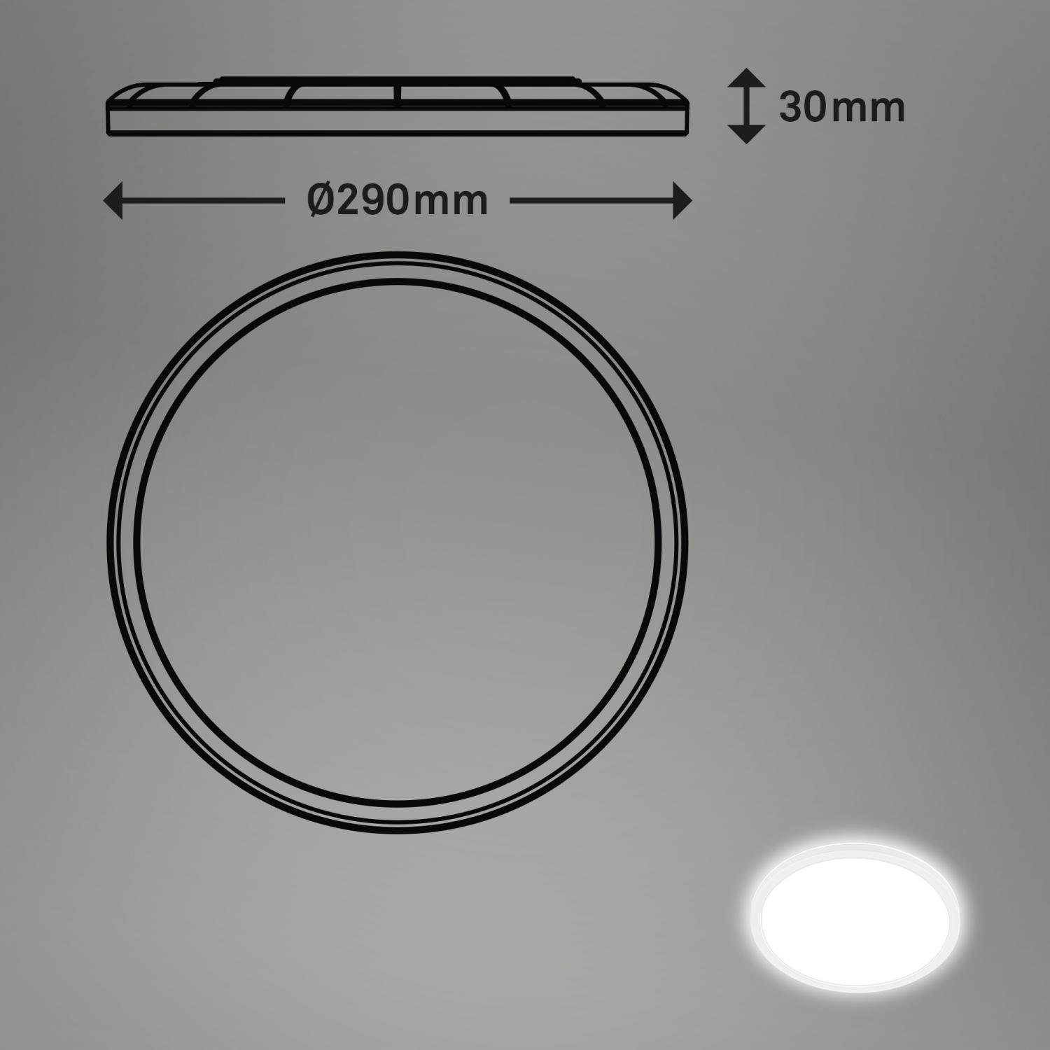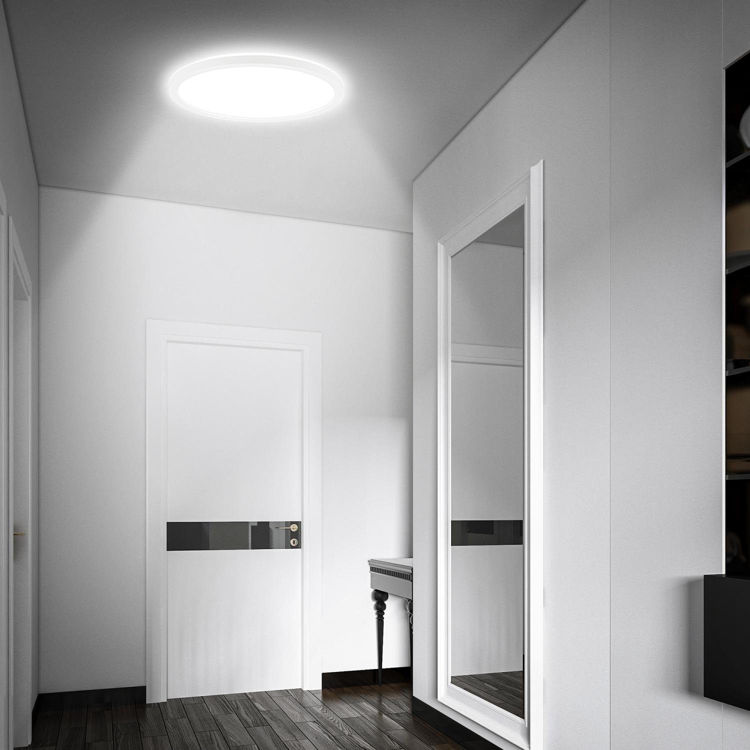 Kruhový tvar a bílá matná povrchová úprava zapadnou do každého moderního či minimalistického interiéru. Výška pouhých 30 mm umožňuje nenápadnou integraci do stropu, takže svítidlo působí lehce a čistě.