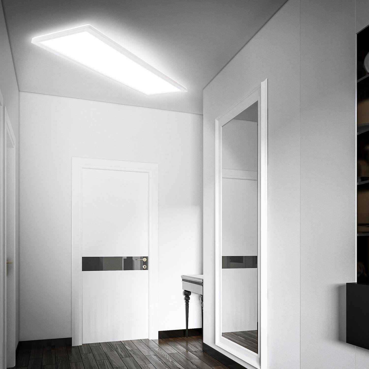 - Výkonné a rovnoměrné LED osvětlení: Integrovaná LED technologie o výkonu 33 W poskytuje intenzivní světelný tok 4800 lumenů při neutrální teplotě 4000 K. To zaručuje jasné, příjemné a rovnoměrné osvětlení koupelny i dalších místností.