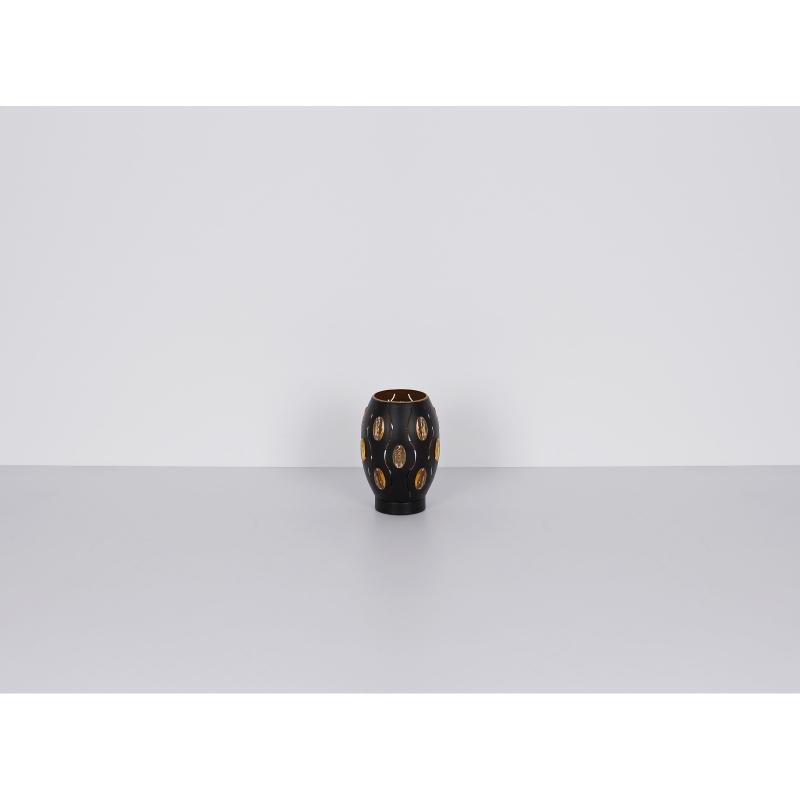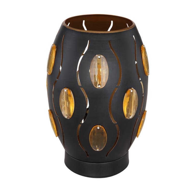 Stolní svítidlo, kov černý, zlatý, akrylové křišťály průhledné s dekorativním děrováním, vypínač, Ø150, V: 230, bez žárovky 1xE27, max. 40W 230V