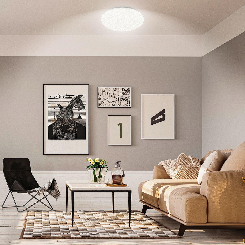 Objevte eleganci a funkčnost v jednom – stropní LED svítidlo Nebo s průměrem 38 cm je ideální volbou pro ty, kdo hledají spojení moderní technologie a dekorativního vzhledu. Díky jemnému květinovému dekoru a decentnímu efektu hvězdného nebe navozuje v interiéru jedinečnou atmosféru, která zaujme na první pohled.