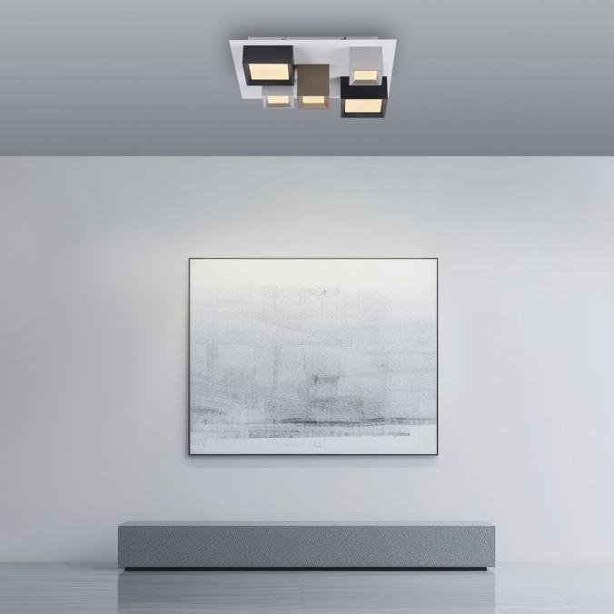 Stropní svítidlo PURE Manhattan od renomovaného výrobce PAUL NEUHAUS představuje špičku současného světelného designu. Jeho výrazná kombinace barev – elegantní šedá, bronzová a hliníková – spolu s precizní, geometrickou formou, vytváří unikátní světelný objekt, který stylově doplní každý moderní interiér. Toto svítidlo je ideální volbou do obývacího pokoje, ložnice, ale i do reprezentativních chodeb a vstupních prostor.