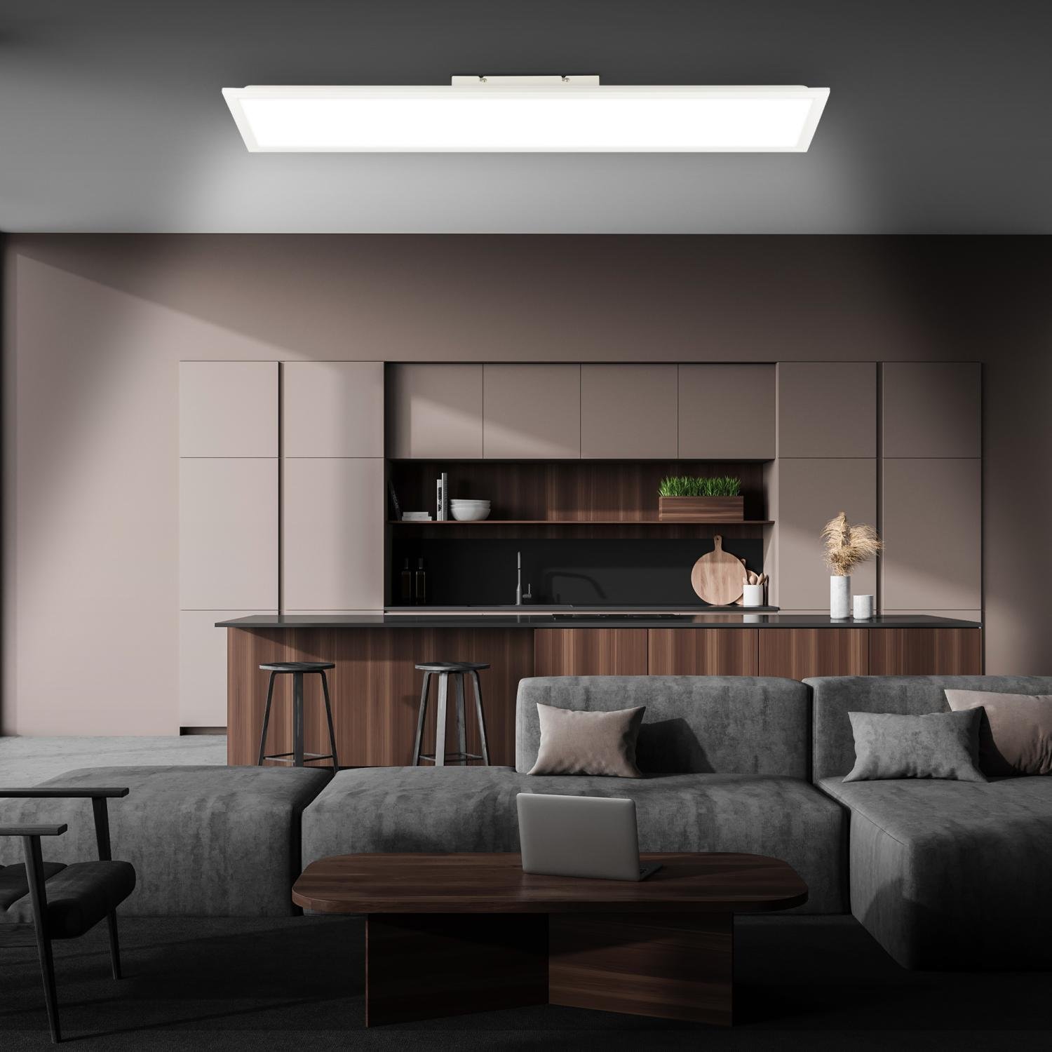 Stropní LED panel Piatto v bílém provedení je navržen pro moderní interiéry, kde je klíčová nejen estetika, ale i flexibilita osvětlení. Díky svému tenkému profilu (výška pouhých 6 cm) a rozměrům 100 x 25 cm se dokonale hodí do obývacích pokojů, kuchyní i reprezentativních firemních prostor.