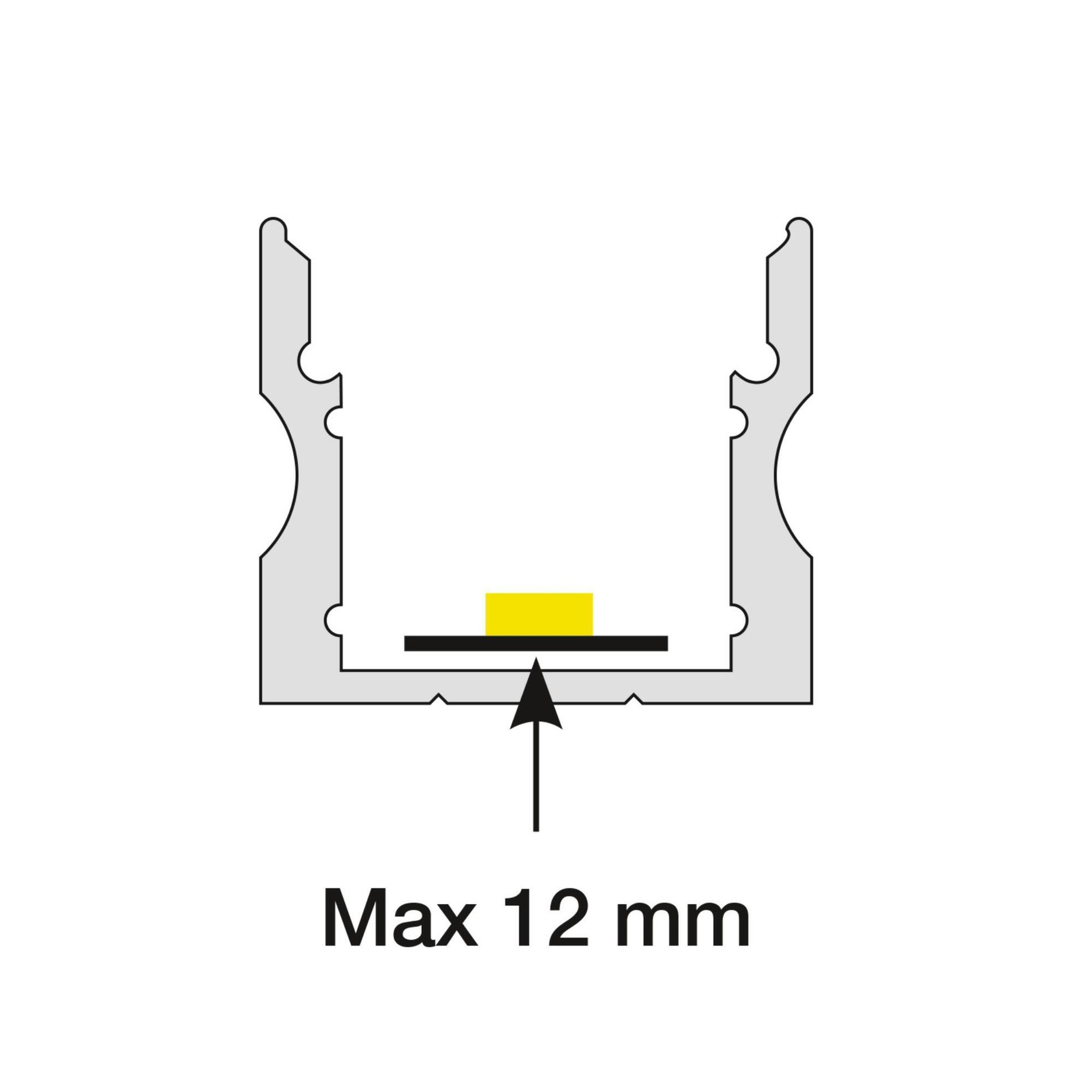 Profil je vhodný pro realizaci liniového osvětlení v rezidenčních i komerčních interiérech - například pro podsvícení kuchyňských linek, nábytkových sestav, vitrín, schodišť nebo jako akcentní světlo v galeriích a retailových prostorech. Díky UV odolnosti a možnosti použití v exteriéru je profil využitelný také pro nasvětlení fasád, podhledů či venkovních detailů.