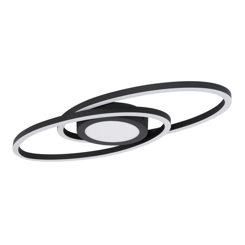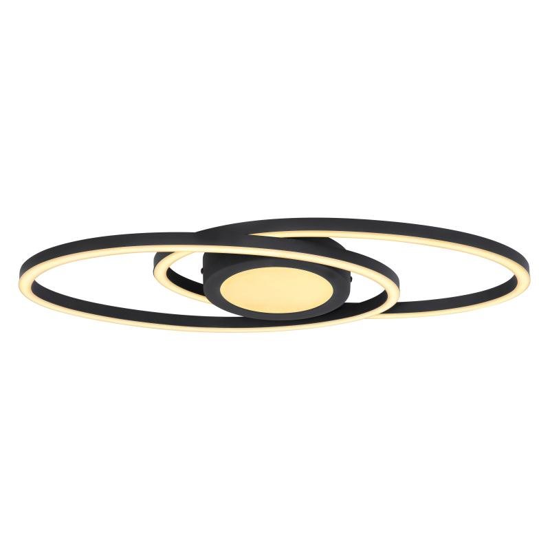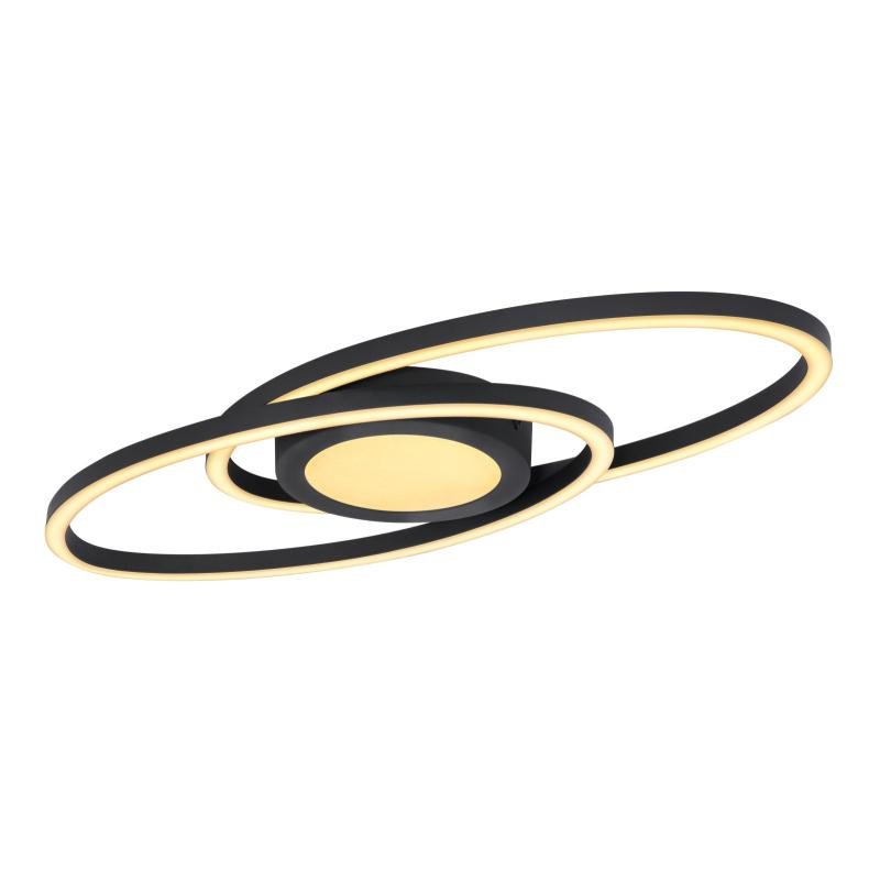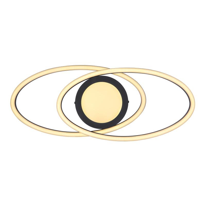 Toto stropní svítidlo ze série Reggy 57x23cm zaujme stylovým designem z černého kovu a opálového plastu. Skládá se ze dvou oválných kovových prstenů, které se pěkně překrývají a jsou opatřeny opálovým plastem. Kulatý kovový rám uprostřed prstenů má také opálový plast a přispívá k dokonale tvarovanému vzhledu stropního svítidla. Kromě toho poskytuje 750lumenů silného světla s příjemnou barvou světla 3000K. S dalšími modely ze stejné série můžete dotvořit celkový obraz ve vašem interiéru a vytvořit elegantní atmosféru.