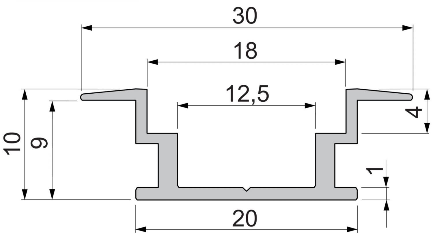Reprofil IP-profil T-plochý ET-05-12 stříbrná elox 3000 mm - LIGHT IMPRESSIONS