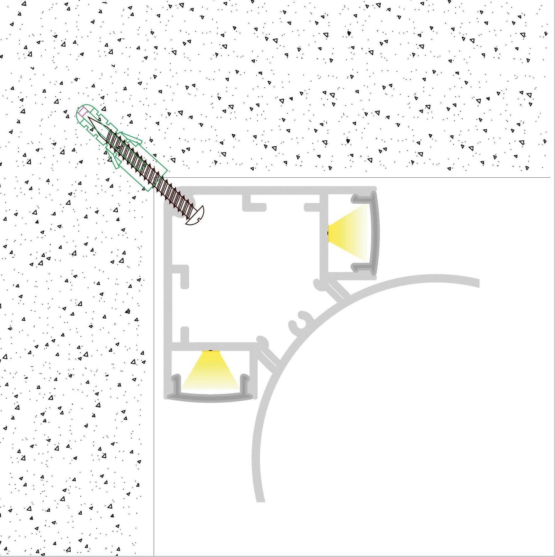 Rohový profil Pro C4 v délce 2,5 m je určen pro instalaci nepřímého osvětlení pomocí LED pásků. Konstrukce umožňuje elegantní vedení světla v rozích místností, kde vytváří měkké, rozptýlené světlo odrážené od stěn a stropu. Profil je vhodný pro návrhy, kde je požadováno nepřímé nasvícení jako součást architektonického konceptu, například v obytných prostorech, hotelových pokojích, recepcích nebo kancelářích.