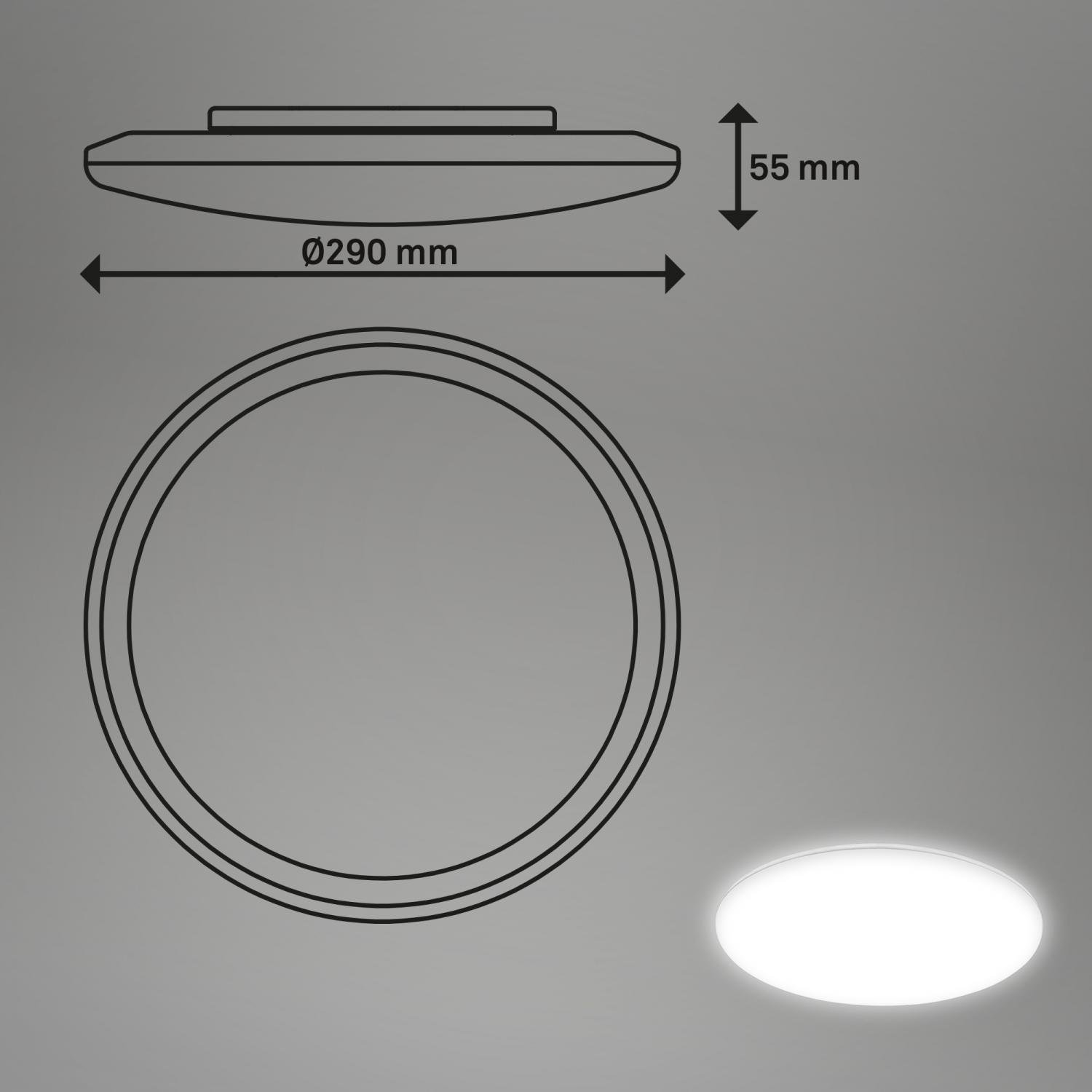 Díky výšce pouhých 5,5 cm a průměru 29 cm můžete svítidlo snadno umístit i do menších koupelen nebo nízkých stropů, kde je žádoucí zachovat maximální prostorovou vzdušnost.
