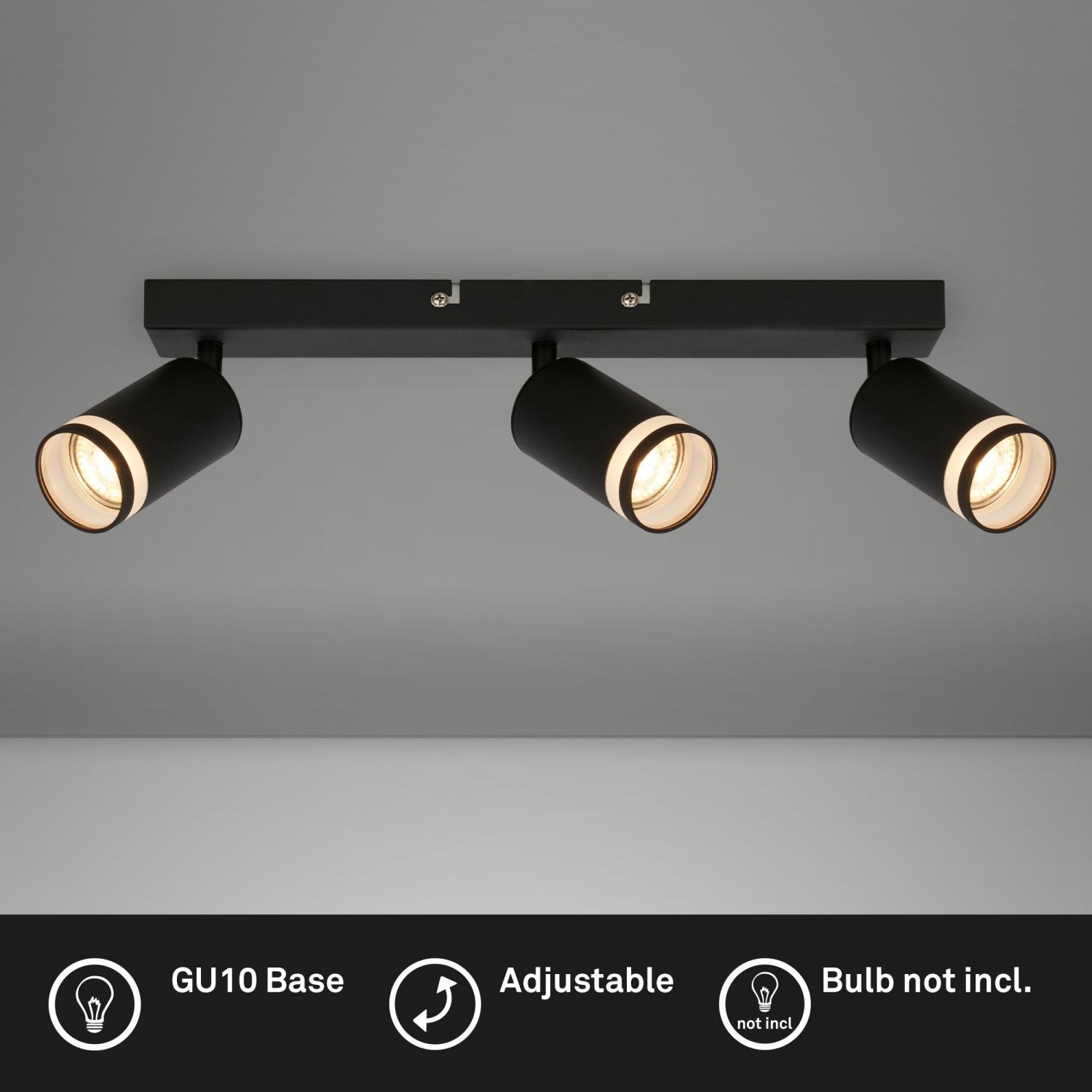 - Možnost volby světelného zdroje – Svítidlo je osazeno třemi paticemi GU10 (max. 9 W/zdroj), což nabízí svobodu výběru intenzity a barvy světla podle vašich preferencí. Světelné zdroje nejsou součástí balení – doporučujeme kvalitní LED žárovky pro maximální úsporu a dlouhou životnost.