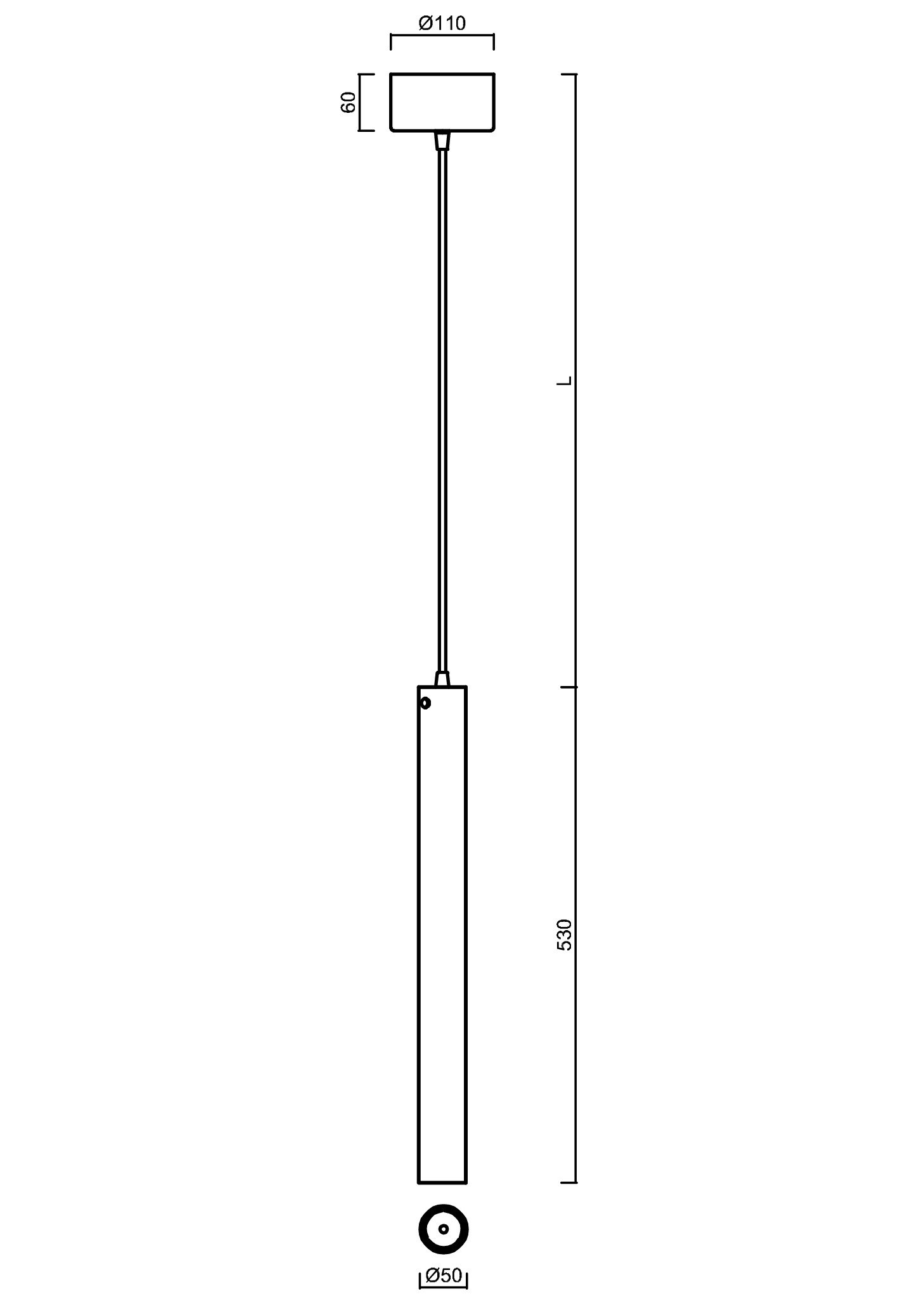 Černé závěsné LED svítidlo ON/OFF a PMMA stínidlo. Kabelový závěs s vnitřním nosným lankem o délce 100 cm.