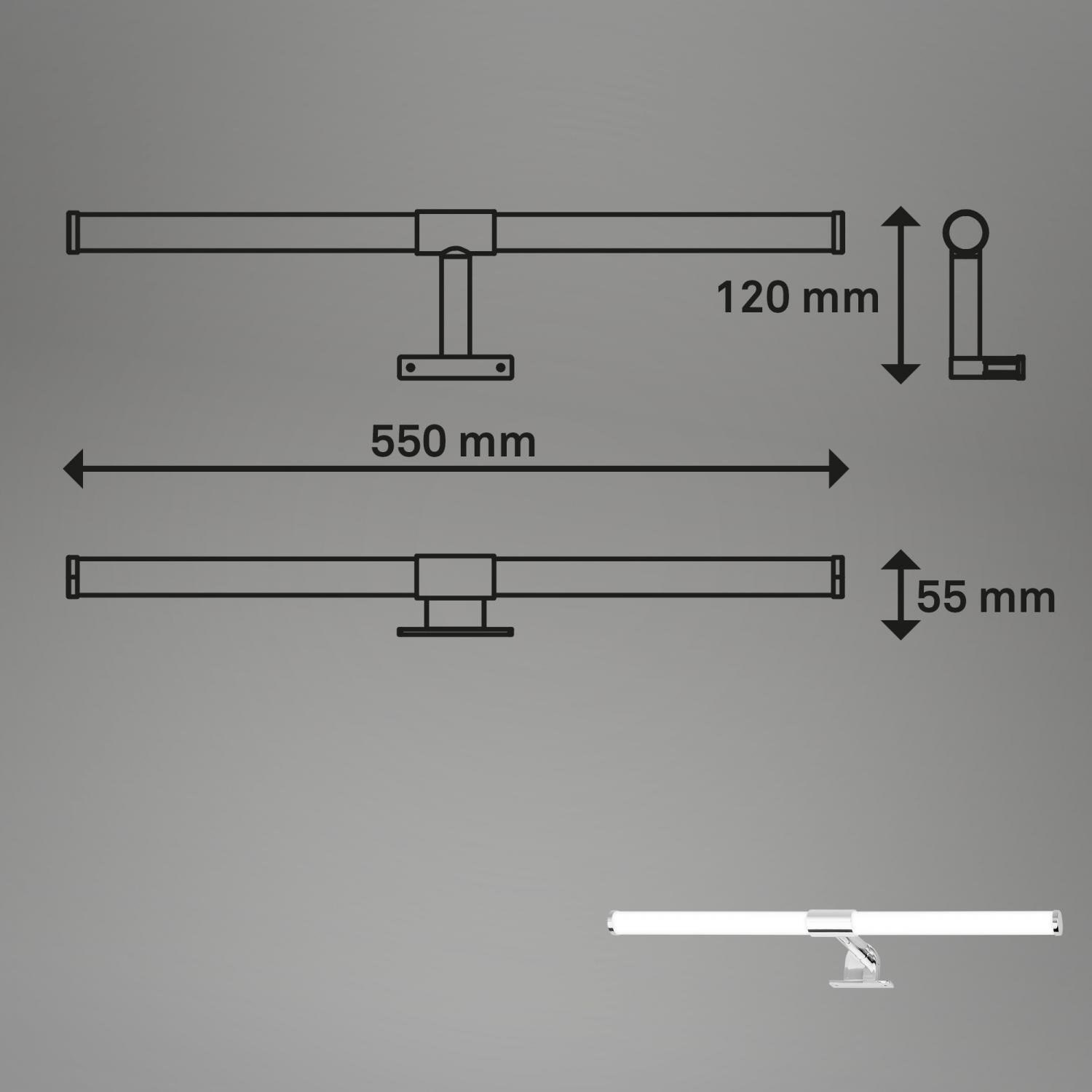 Sala LED svítidlo k zrcadlu koupelna, 55cm, 2 způsoby montáže, se svorkou, chrom - BRILONER