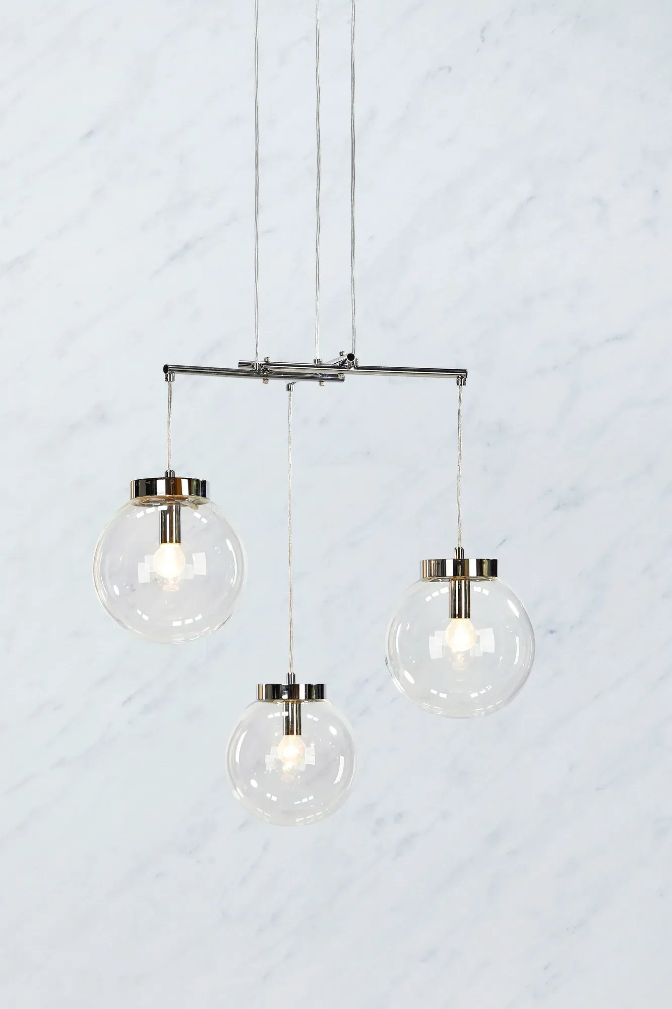 Závěsné svítidlo Markslöjd Sicily v chromovém provedení je dokonalou volbou pro ty, kteří hledají moderní, nadčasové a vzdušné osvětlení do interiéru. Díky třem skleněným koulím zavěšeným v různých výškách na transparentních kabelech působí svítidlo velmi lehce a dynamicky. Precizně leštěný chrom v kombinaci s čirým sklem podtrhuje čistý design, který harmonicky zapadne do obýváku, jídelny i předsíně.