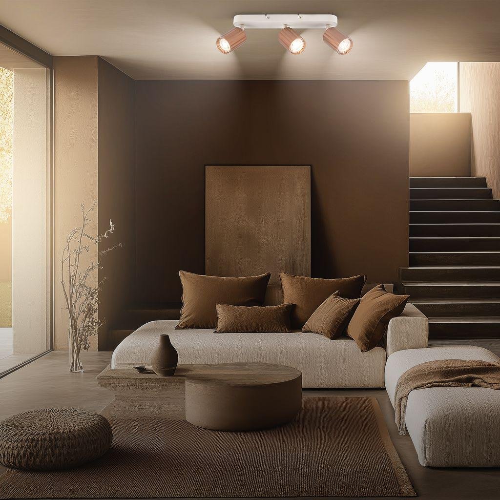 Stropní bodové svítidlo BRILONER Skaft v elegantní kávové barvě je ideálním řešením pro ty, kdo hledají kombinaci stylového designu a vysoké variability. Tři samostatně nastavitelné spoty umožňují přesné nasměrování světla podle aktuálních potřeb, ať už jde o osvětlení obývacího pokoje, chodby, kuchyně či pracovny.