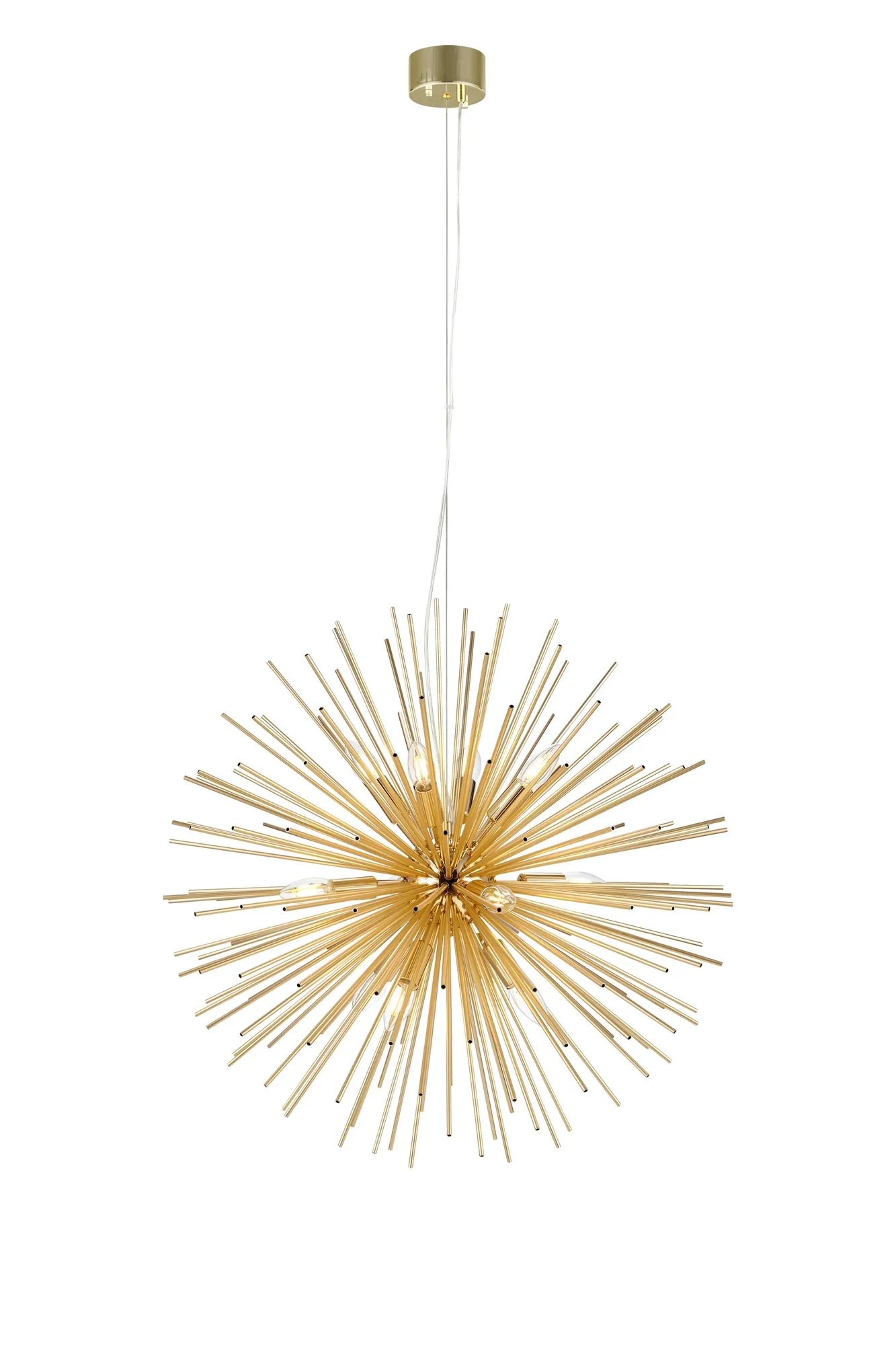 Závěsné svítidlo Markslöjd Soleil je skutečnou designovou perlou, která okamžitě upoutá pozornost v každém prostoru. Inspirováno tvarem slunce, okouzlí svým luxusním vzhledem díky zlatým kovovým prutům, které vytvářejí unikátní třpytivý efekt a rozptylují světlo do všech stran. S dvanácti světelnými body poskytuje Soleil nejen dostatek osvětlení, ale také neopakovatelnou atmosféru.