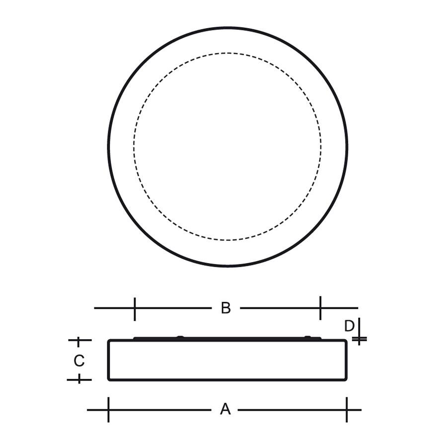 Rozměry: A: 500 mm, B: 450 mm, C: 90 mm, D: 13 mm
