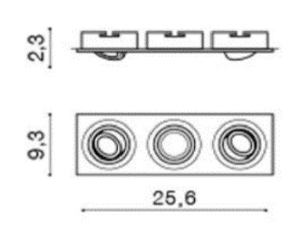 Stropní tříbodové svítidlo Caro 3 Square v hranatém provedení z kolekce funkčního osvětlení značky Azzardo je určeno pro zapuštěnou montáž do interiéru. Jeho výhodou je možnost natáčení světelného paprsku pomocí pohyblivých kulatých difuzorů. Vzhledem k nízkému krytí IP20 není vhodné do koupelny a místností s výskytem vyšší vlhkosti vzduchu. Pro montáž je potřeba otvor o rozměrech 80 x 240 mm. Svítidlo je zhotoveno z kvalitních materiálů, jako je hliník a kov, v moderní hliníkové povrchové úpravě. Je osazeno paticí GU10 o maximálním příkonu 3 x 40 W (zdroje nejsou součástí balení). Jeho celkové rozměry činí 2,3 x 25,6 x 9,3 cm. Je napájeno ze sítě na 230 V a vztahuje se na ni záruka 3 roky.