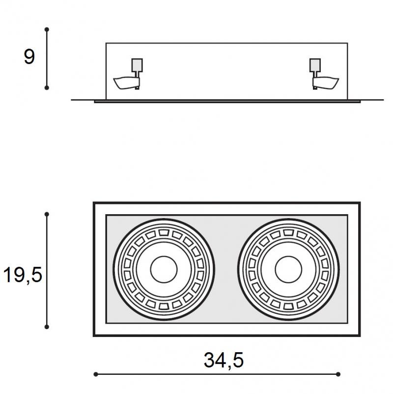 Stropní bodové svítidlo Nova 2 z kolekce funkčního osvětlení značky Azzardo je určeno pro zapuštěnou montáž do interiéru s krytím IP20. Není tedy vhodné do koupelny a místností s výskytem vyšší vlhkosti vzduchu. Svítidlo je zhotoveno z kvalitních materiálů, jako je kov a hliník, s bílou povrchovou úpravou. Jeho celkové rozměry činí 9 x 34,5 x 19,5 cm. Pro montáž je potřeba otvor o rozměrech 202 x 102 mm. Svítidlo je určeno k napájení ze sítě na 230 V a osazeno dvěmi paticemi GU10 pro žárovky o průměru 111 mm. Buď je možné použít klasické žárovky s paticí GU10 o max. příkonu 2 x 40 W a to s použitím adaptéru ADAP111 PAR16 (obj. kód AZ1117), nebo je možné zakoupit již přizpůsobené žárovky typu ES111 o max. příkonu 2 x 50 W. Zdroje, ani adaptér nejsou součástí balení. Oba dva difuzory je možné naklápět v úhlu 90 stupňů a nasměrovat si tak světelný paprsek, kam potřebujete. Na svítidlo se vztahuje záruka 3 roky.