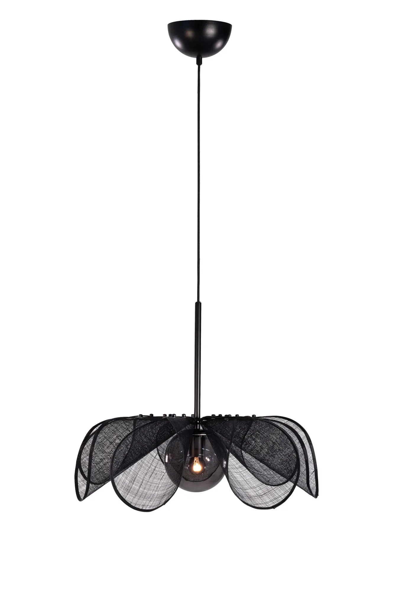 Svítidlo Markslöjd Styrka v elegantní černé barvě je poutavým prvkem pro váš interiér. Jeho stínidlo připomíná otevřený květ a vzniklo pod kreativním vedením designérského dua Anja Pärson a Filippa Rådin. Každý „okvětní lístek“ je vyroben z přírodního banánového vlákna s jemnou strukturou připomínající len, což dává svítidlu živý a jedinečný charakter. Díky ručně sestavovaným detailům, kouřově zbarvené skleněné kouli a matně černým kovovým prvkům získává svítidlo nebývalou hloubku a eleganci.