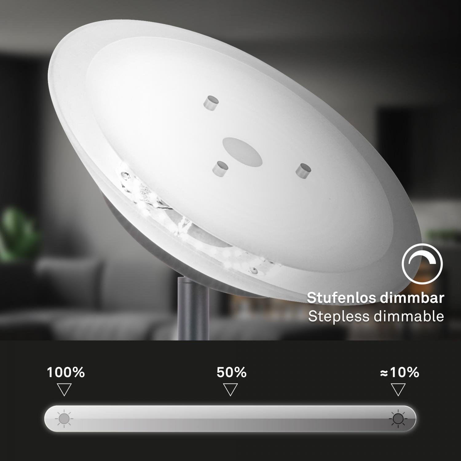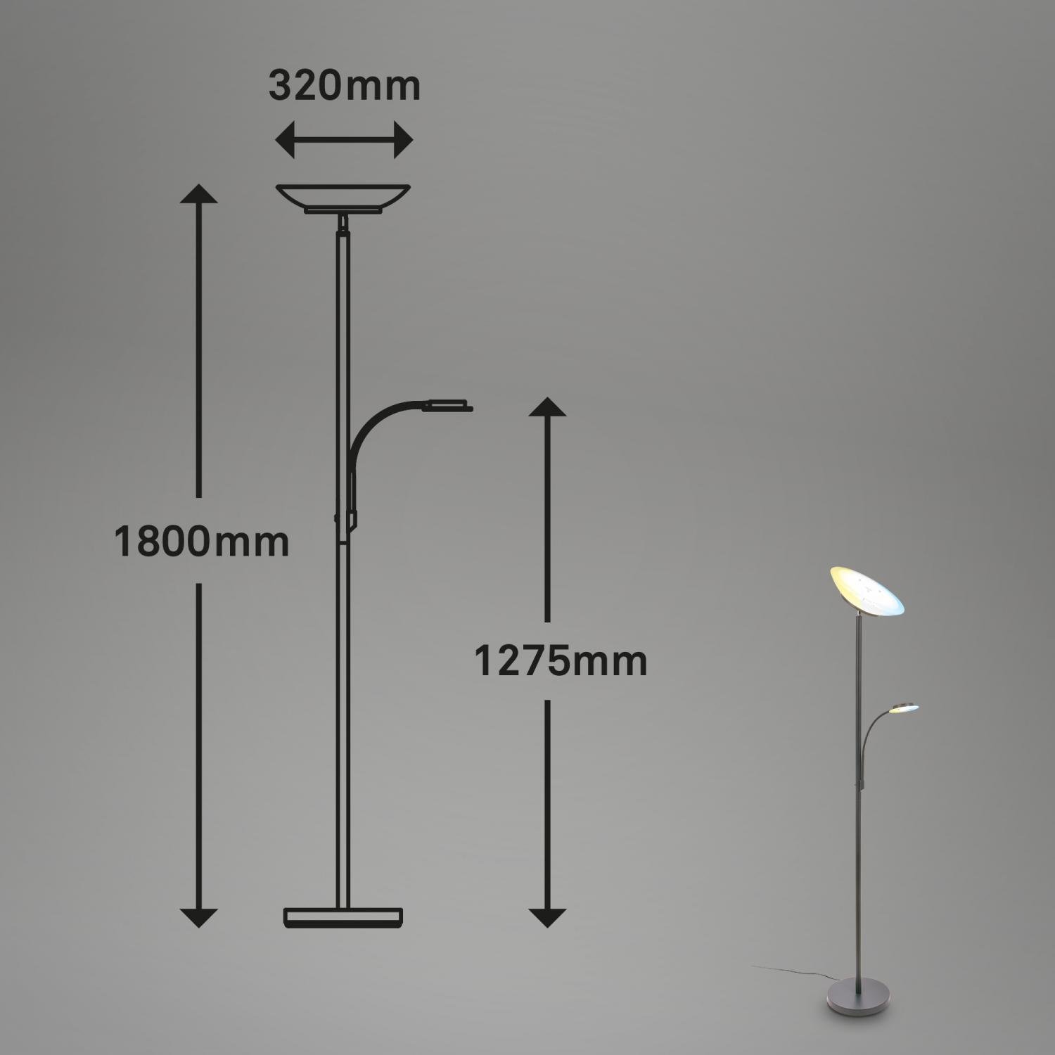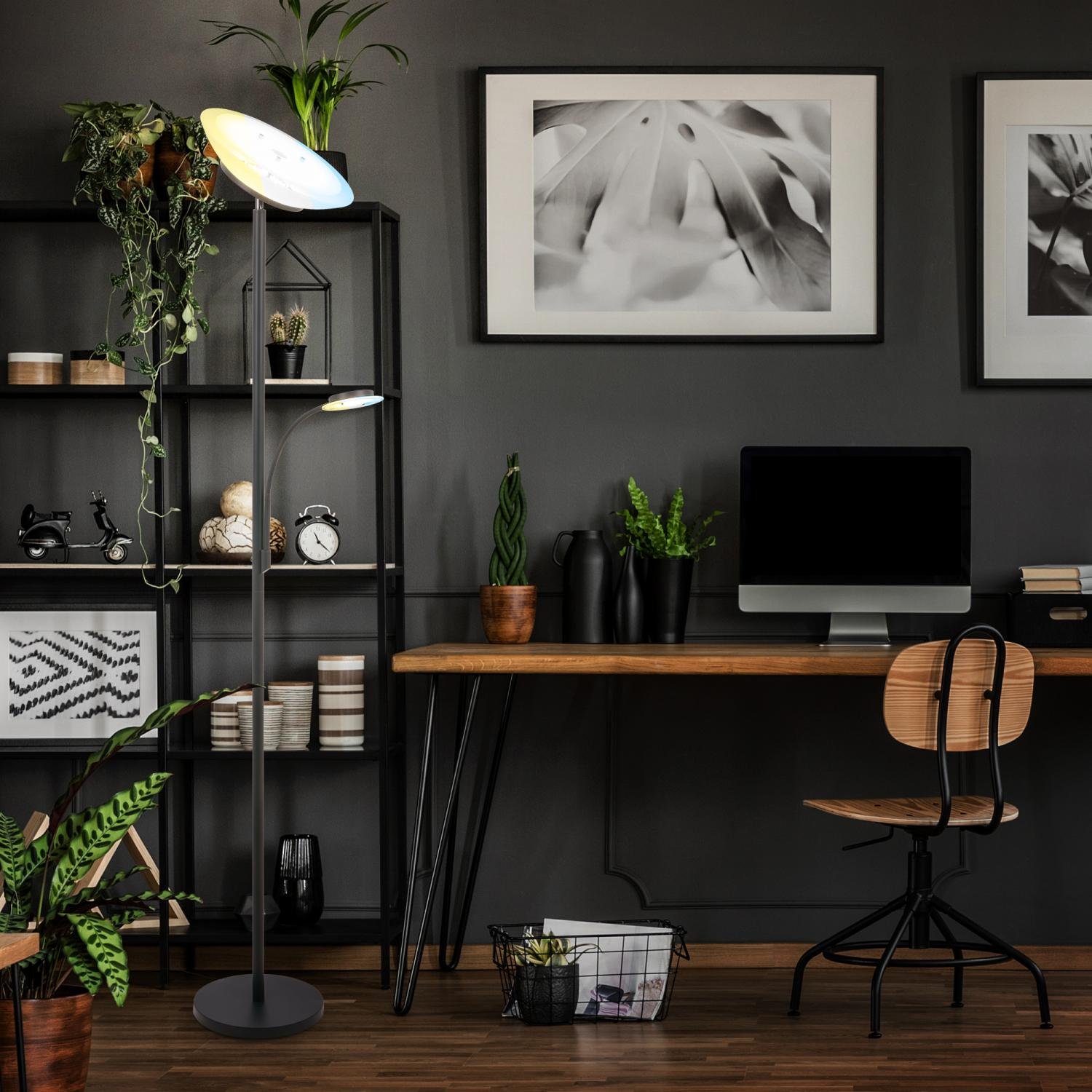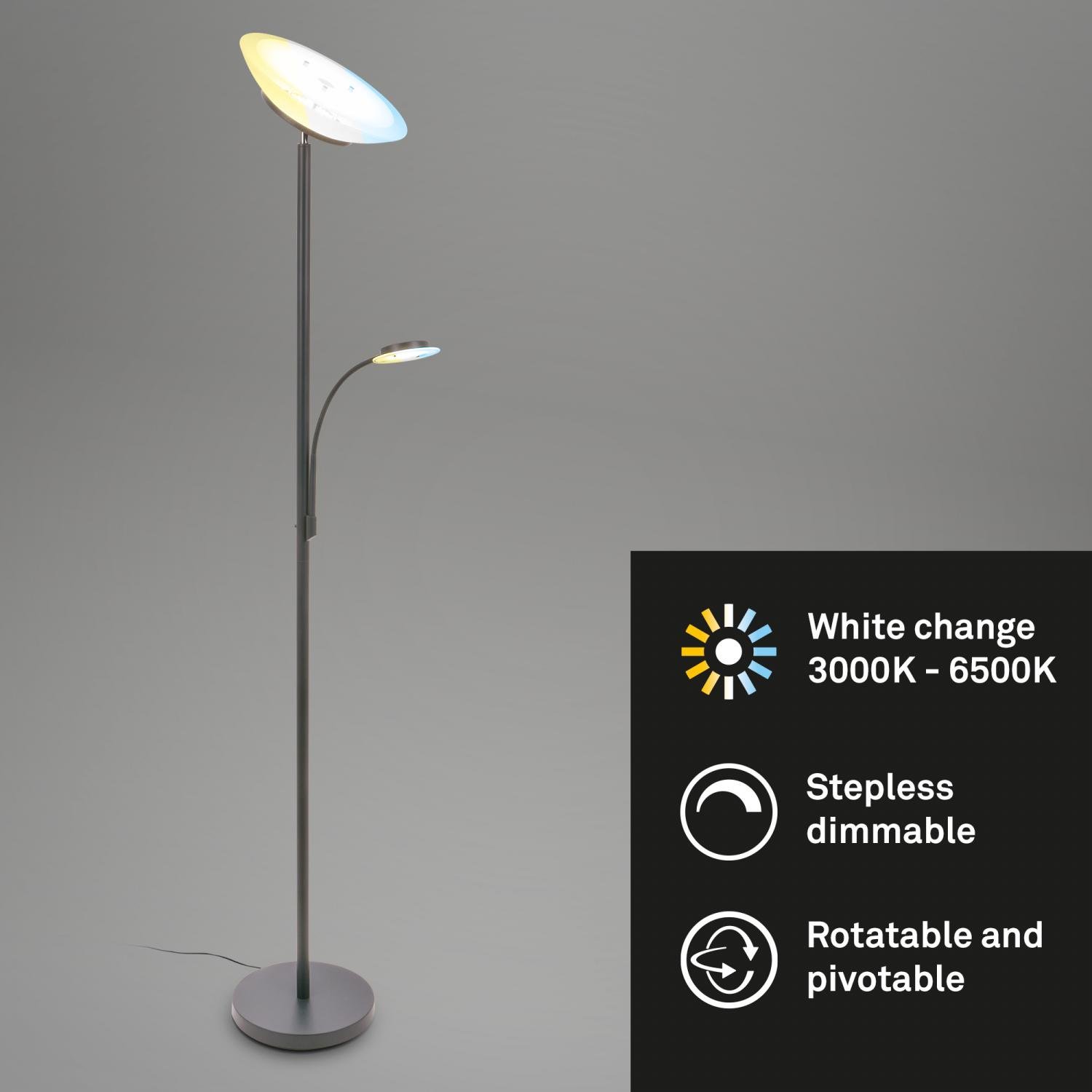 Suda LED stojanová lampa s lampičkou na čtení, CCT, stmívatelná, antracit – BRILO