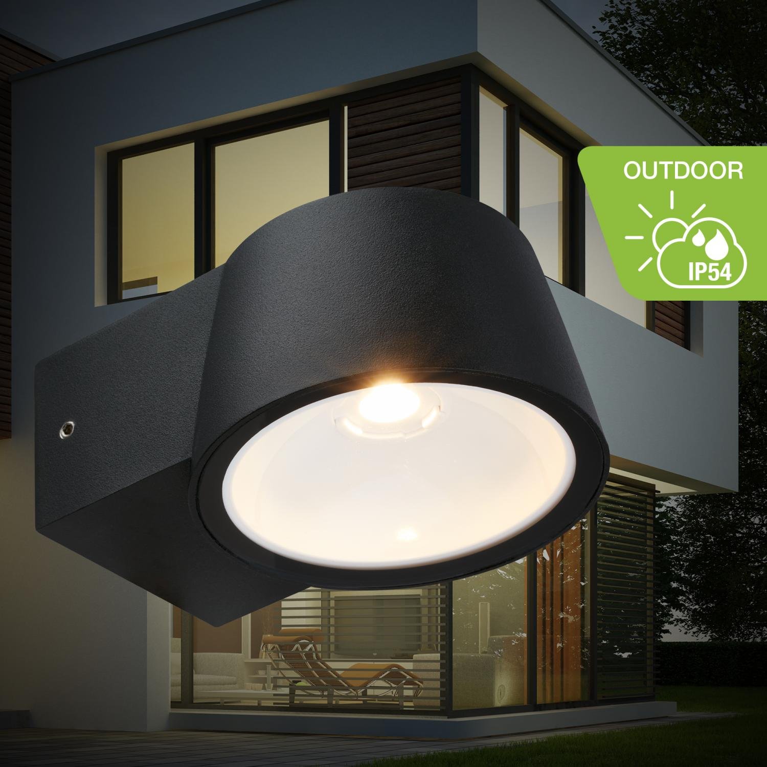 TELEFUNKEN LED venkovní nástěnné svítidlo, IP54 voděodolné a prachotěsné, černý hliník - BRILONER