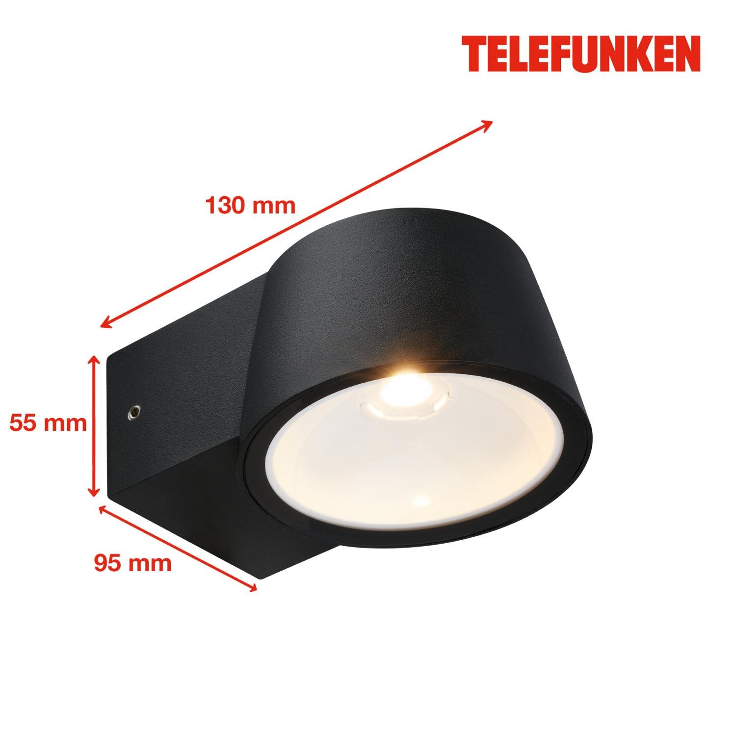 TELEFUNKEN LED venkovní nástěnné svítidlo, IP54, černý hliník – Briloner