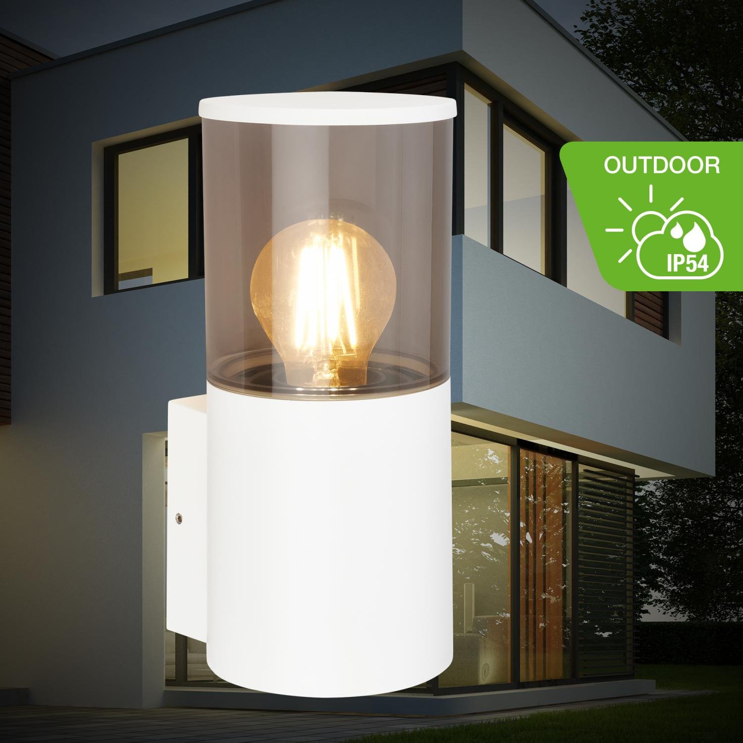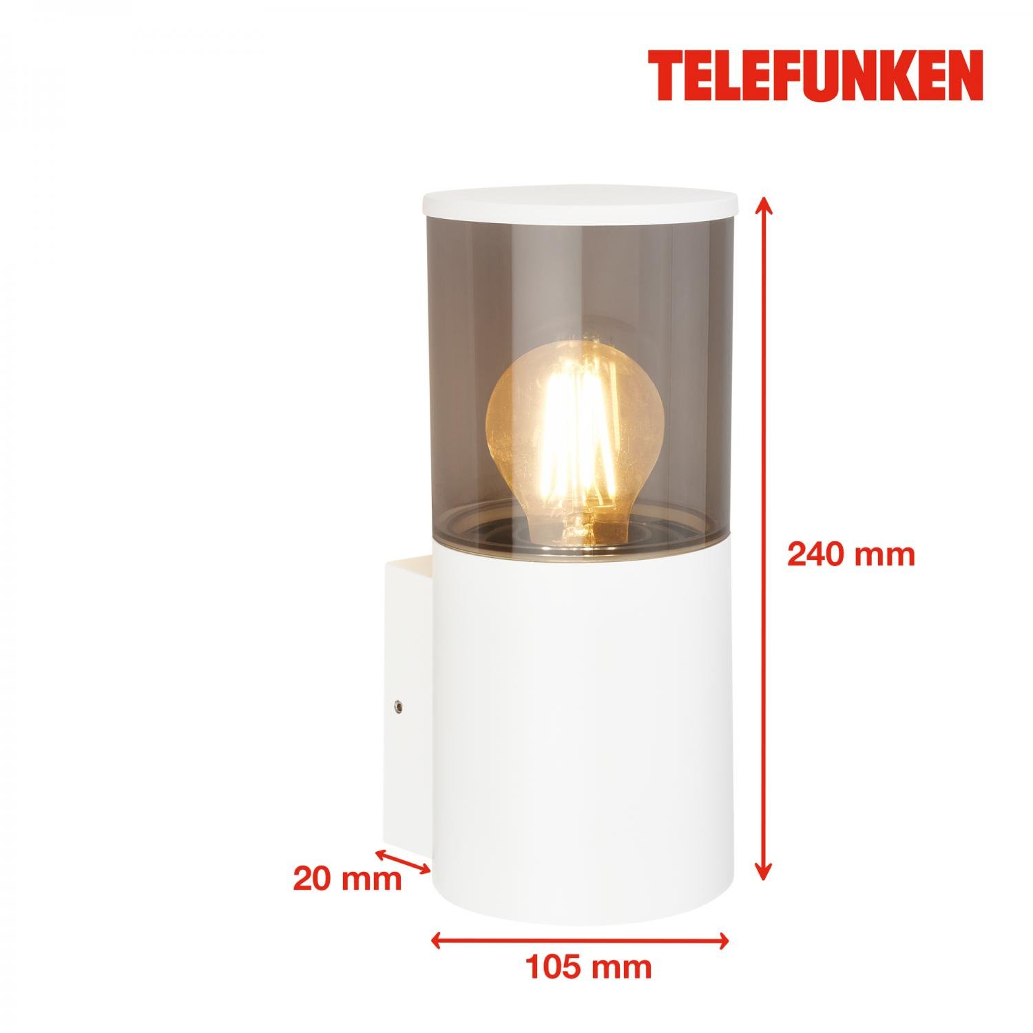 TELEFUNKEN venkovní nástěnné svítidlo, voděodolné a prachotěsné, kouřové sklo, E27 patice, bílé - BRILONER