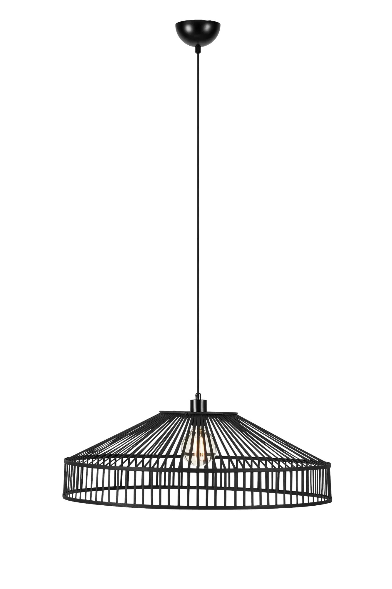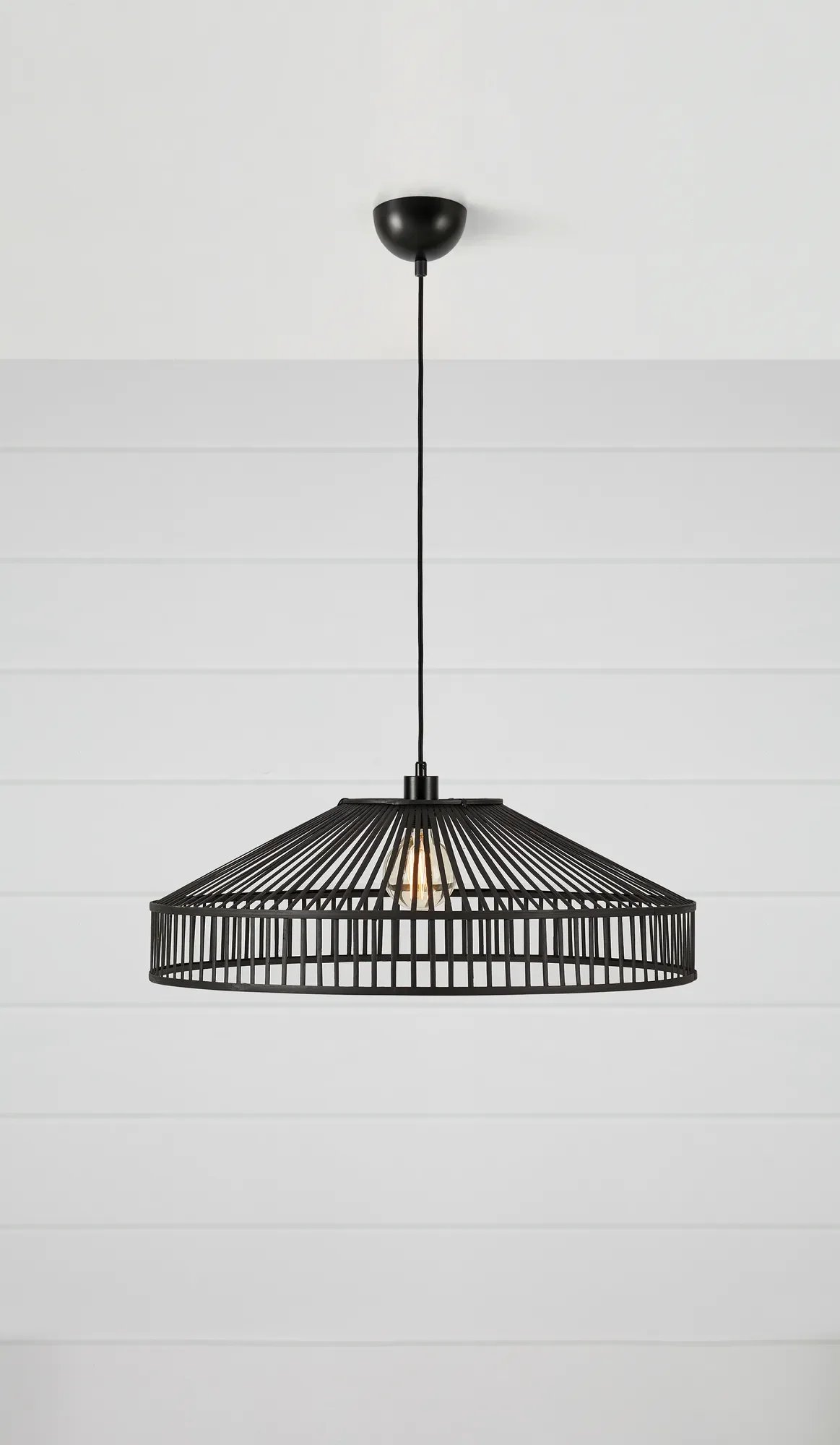 Minimalistický tvar stínidla, připomínající víko, nechává vyniknout dekorativní světelný zdroj. Otevřená konstrukce stínidla umožňuje použít stylovou filamentovou žárovku nebo LED světlo s příjemným spektrem, které podtrhne přírodní charakter bambusu. Černá barva dodává svítidlu univerzální vzhled – perfektně zapadne do industriálních, skandinávských i boho interiérů.