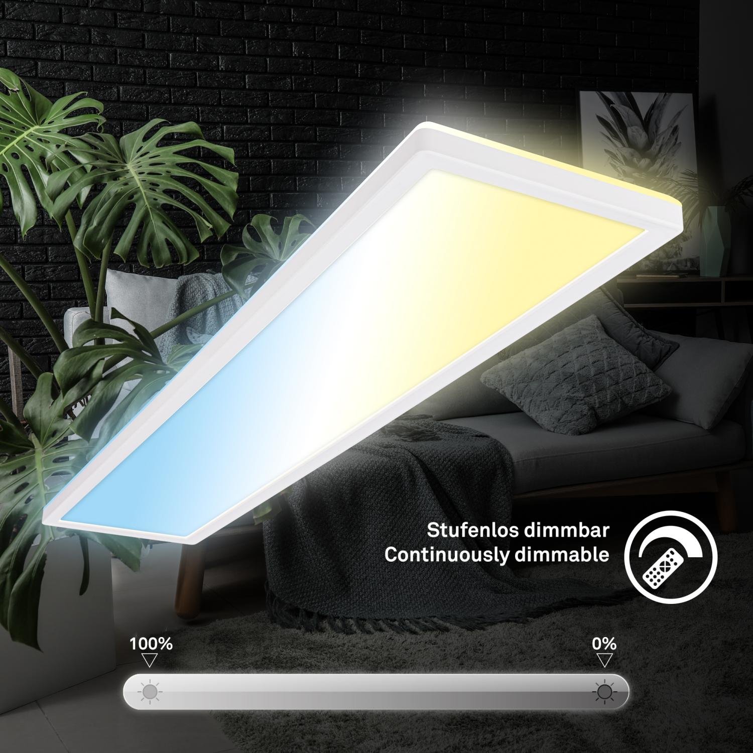 Tava LED stropní svítidlo 98 cm, stmívatelné, dálkový ovladač, bílé – BRILO