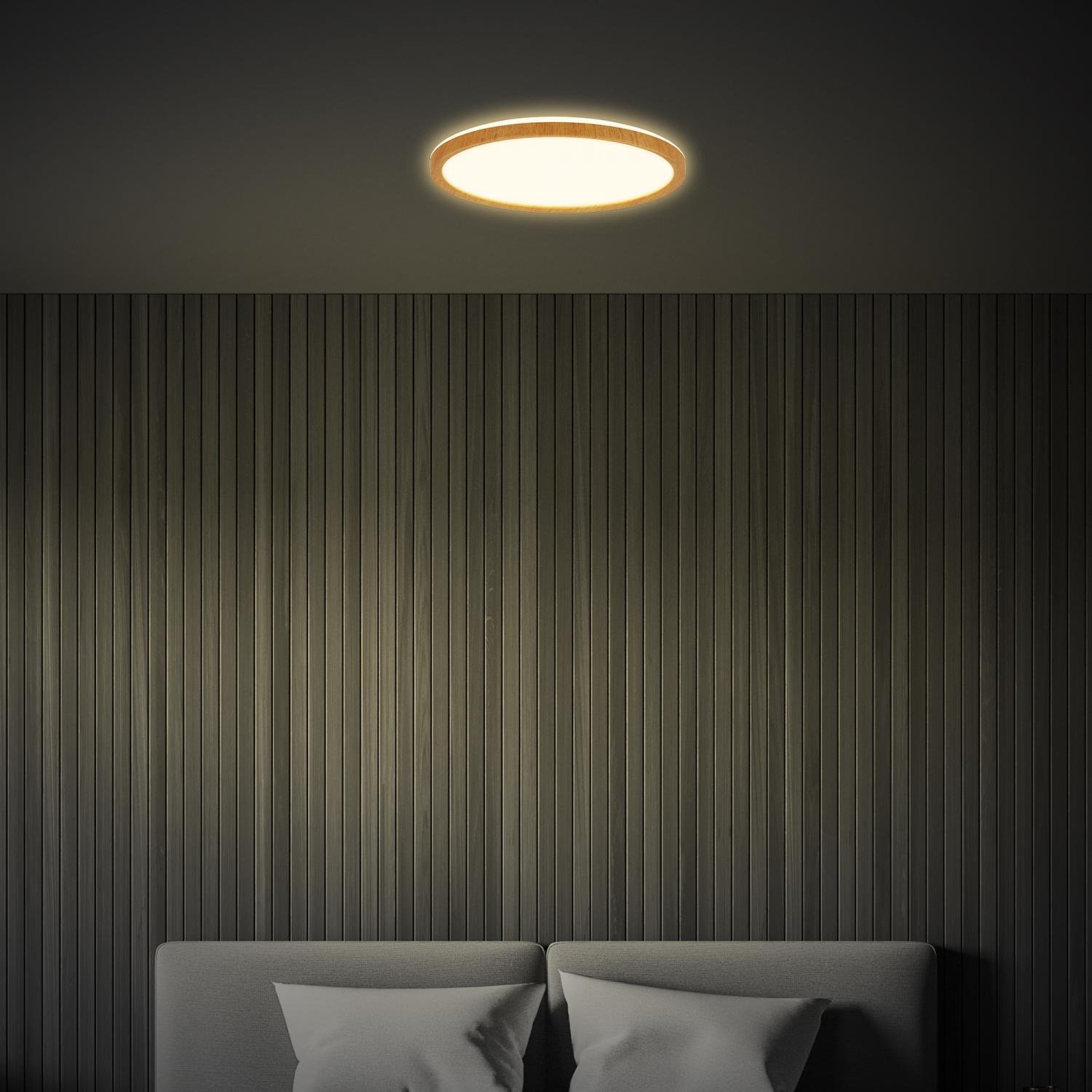 Tava Wood LED stropní svítidlo, přímé a nepřímé osvětlení, ploché, imitace dřeva, kruhové 29 cm - BRILO