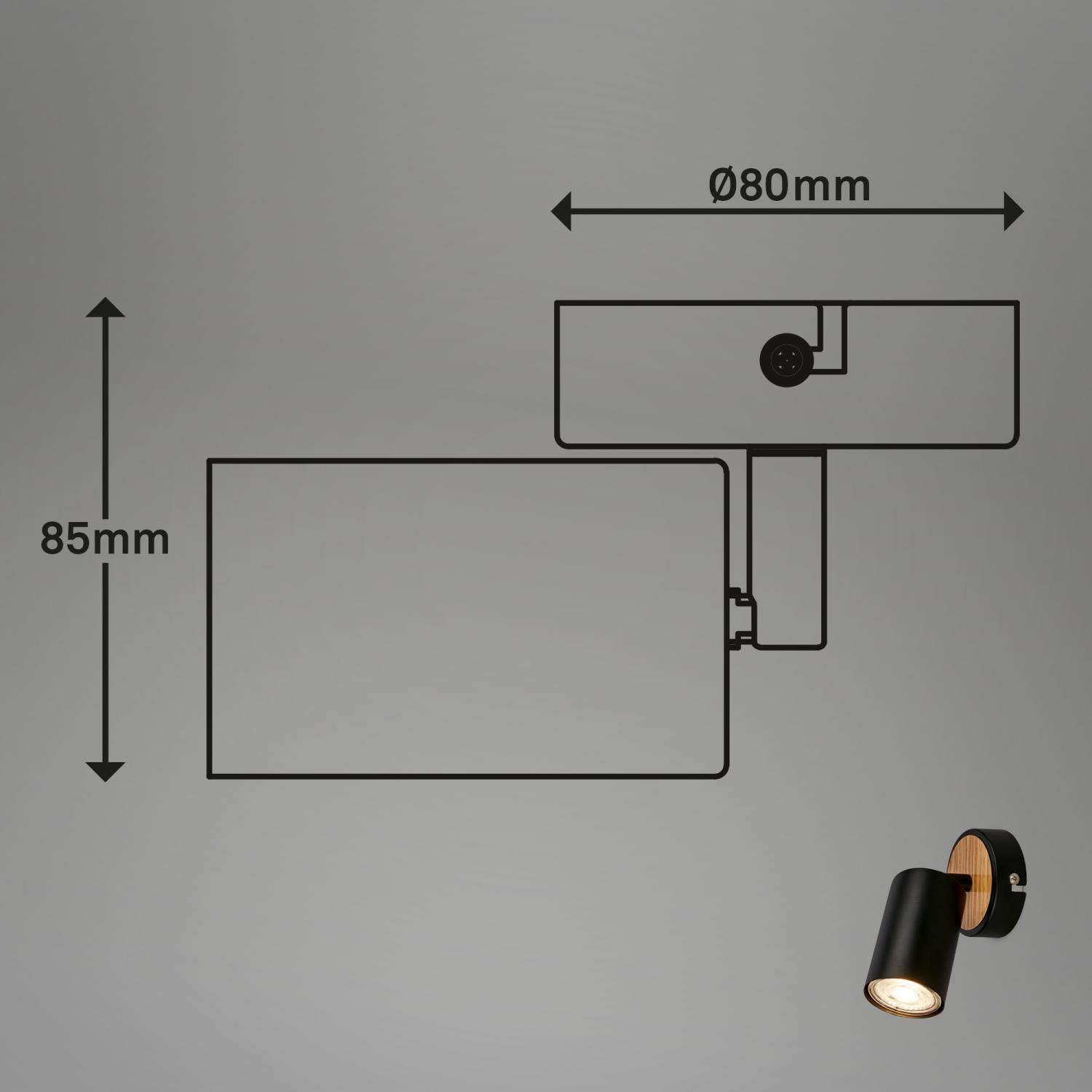 Tib nástěnné svítidlo do interiéru, nastavitelné, On/Off, černá / dřevo - BRILO
