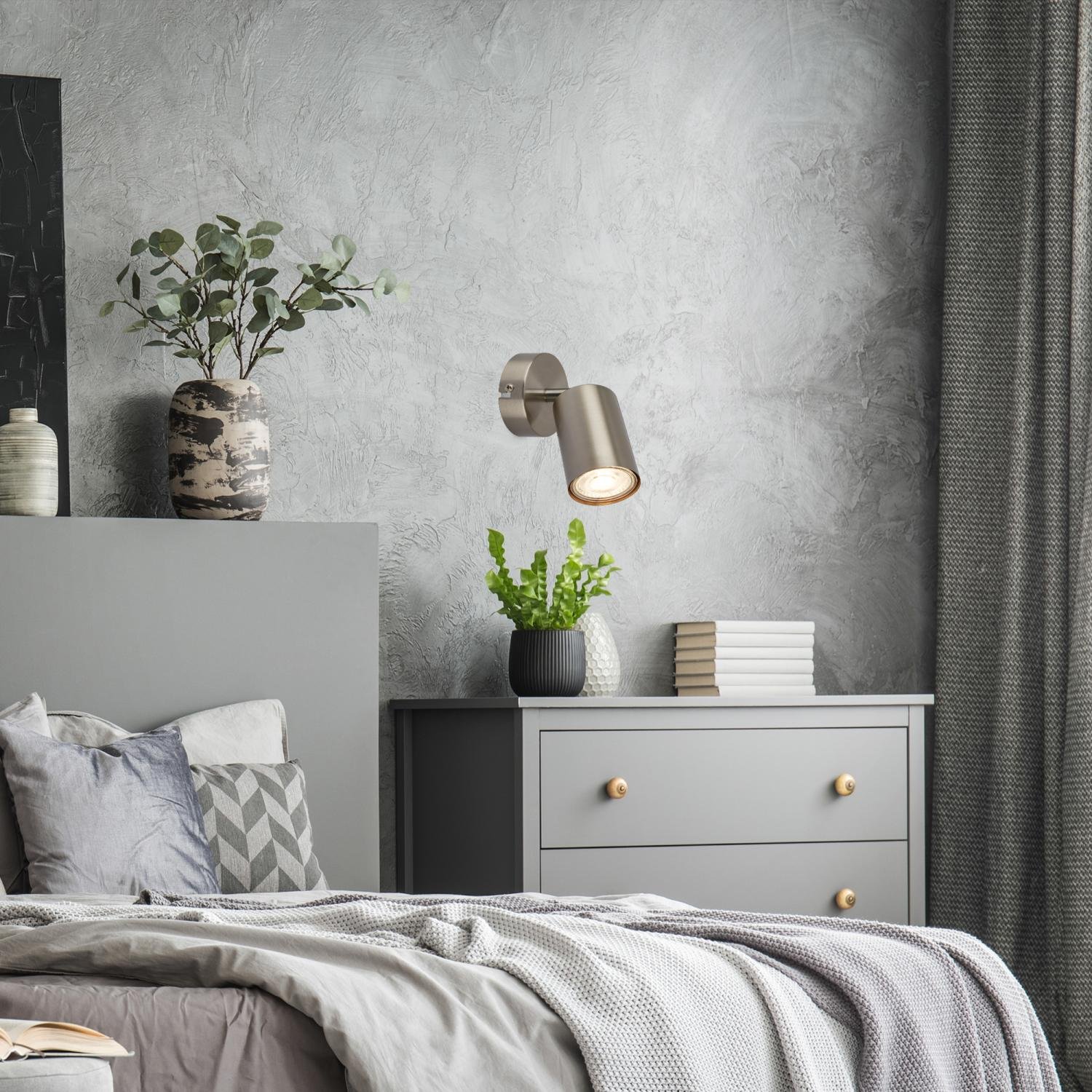 Tib nástěnné svítidlo do interiéru, nastavitelné, On/Off nástěnným vypínačem, stříbrná - BRILO