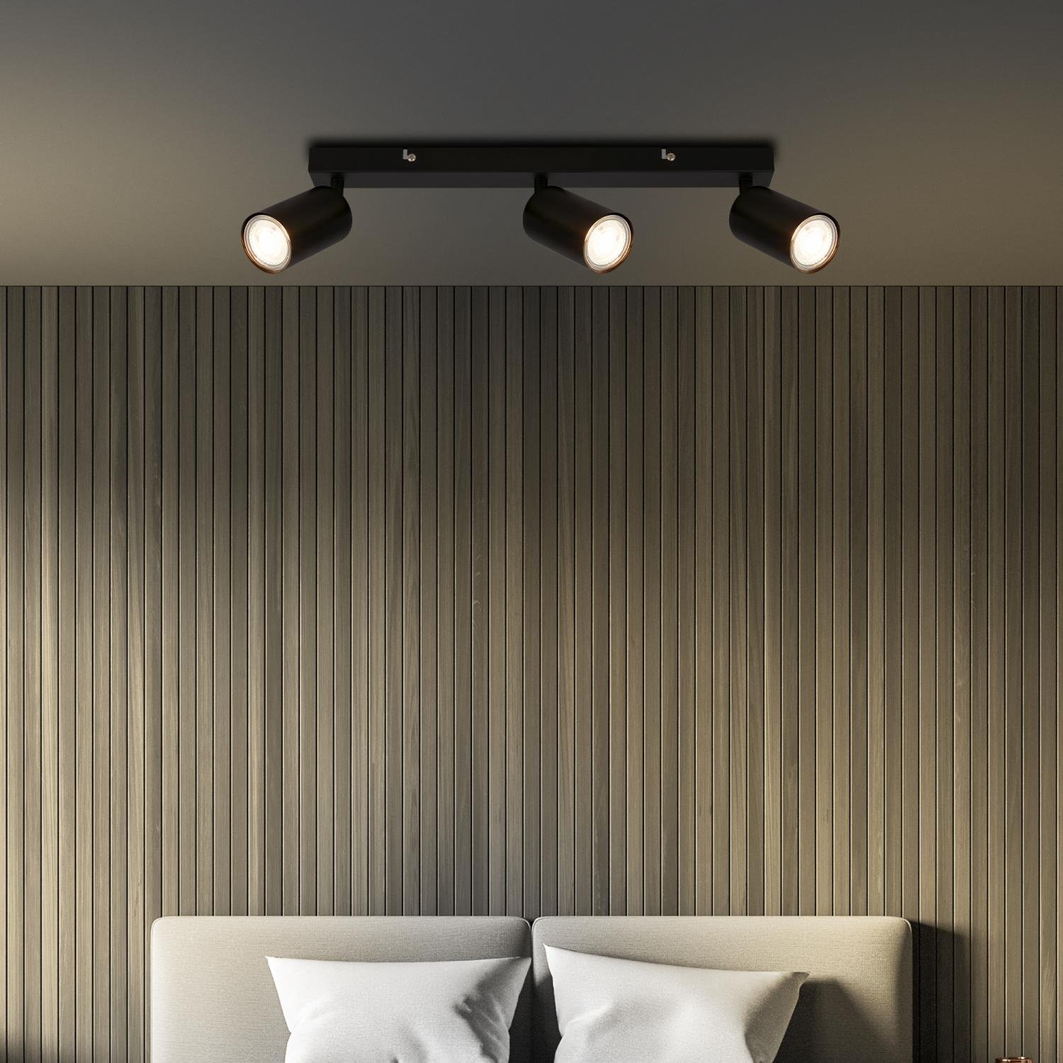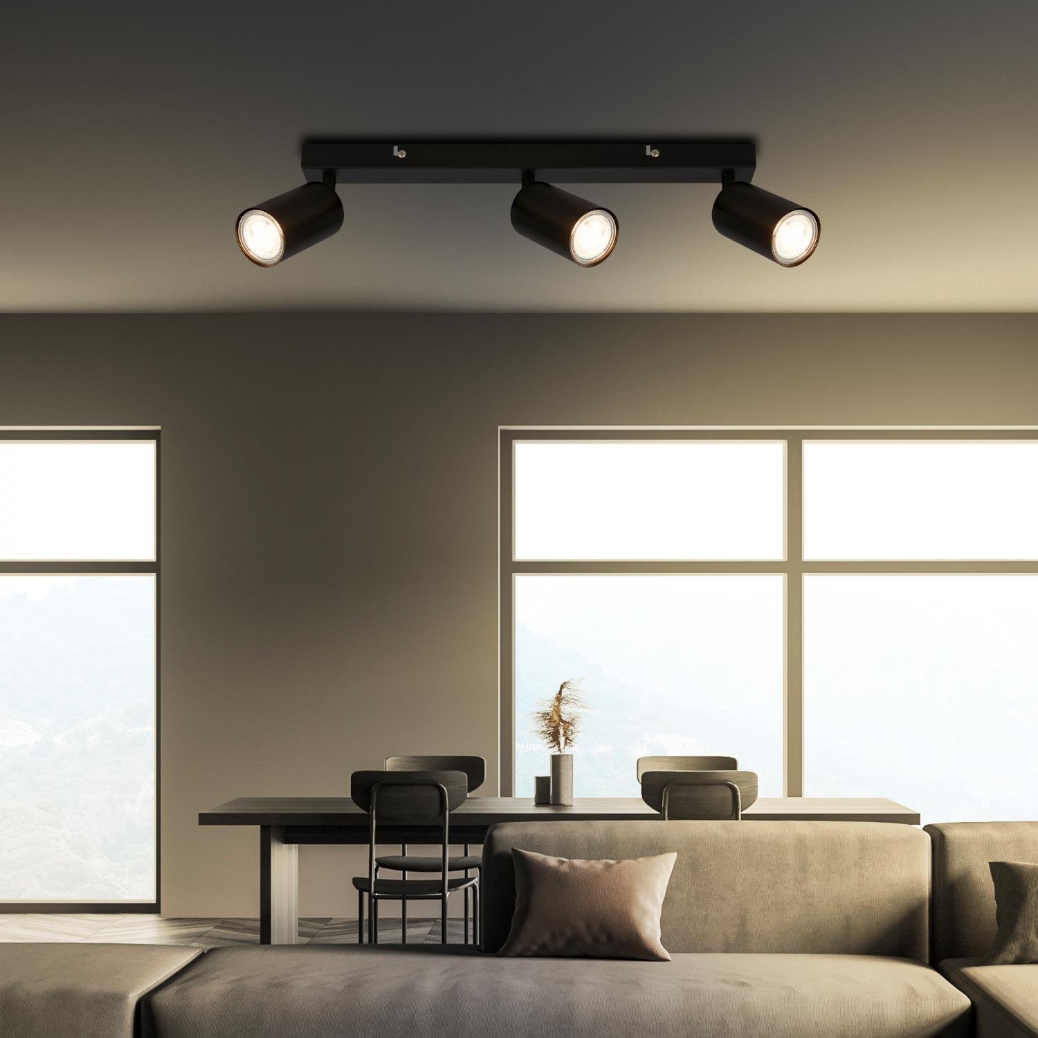 Stropní bodové svítidlo BRILONER Tib v elegantní černé barvě představuje ideální volbu pro ty, kteří hledají flexibilní a designové řešení osvětlení do moderních interiérů. Jeho tři otočné a naklápěcí spoty vám umožní nasměrovat světlo přesně tam, kde jej potřebujete – ať už osvětlíte pracovní plochu v kuchyni, jídelní stůl nebo vytvoříte akcentní osvětlení v chodbě či obývacím pokoji.