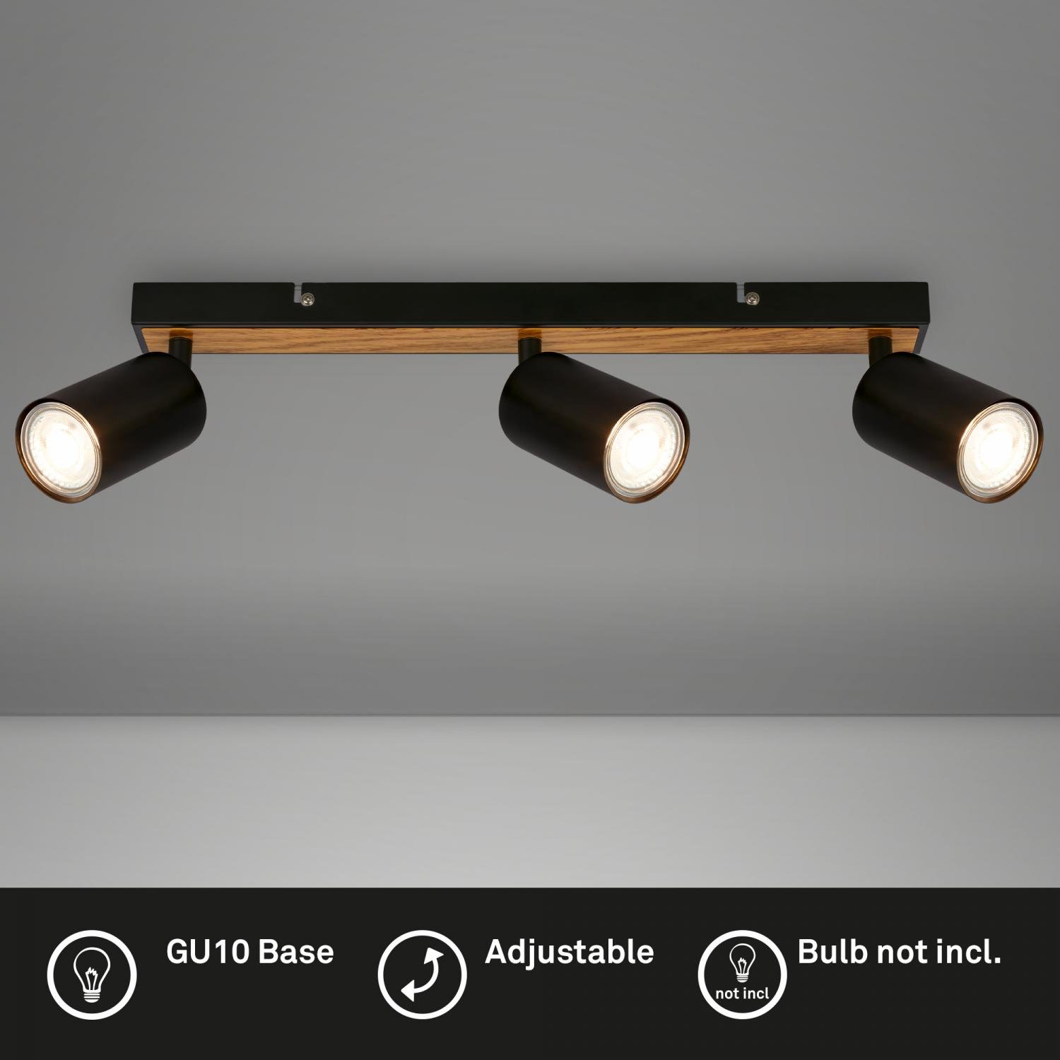 BRILONER Tib stropní bodové svítidlo, 3-ramenné, černá/dřevo – Moderní akcent do každého interiéruElegantní design a funkčnostStropní bodové svítidlo BRILONER Tib v černo-dřevěné… Více