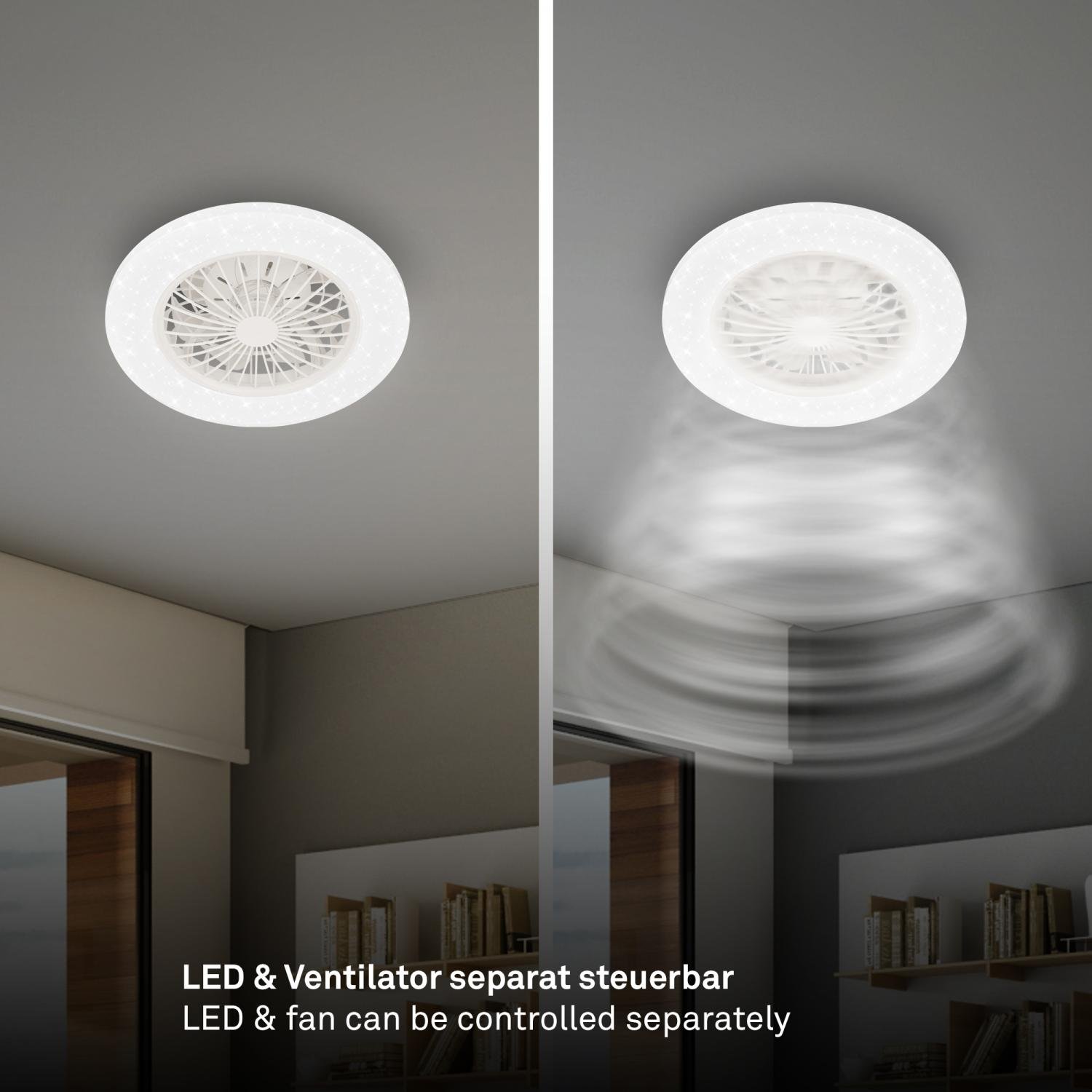 - Samostatné ovládání světla a ventilátoru: Pomocí dálkového ovladače můžete nezávisle regulovat světlo i ventilátor včetně časovače a nočního režimu.