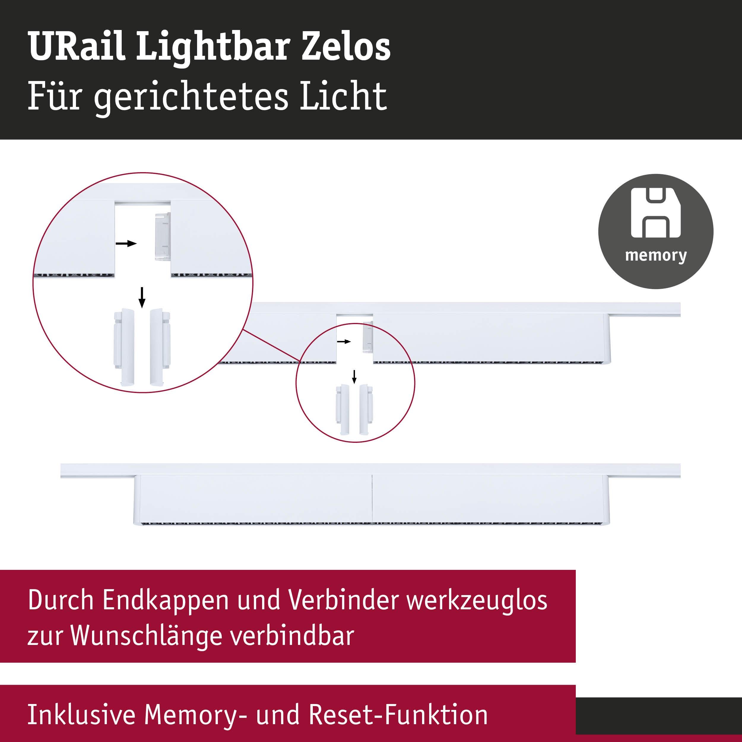 URail Lightbar 3-krokové-stmívatelné Zelos 10W 3000K stmívatelné 230V bílá - PAULMANN