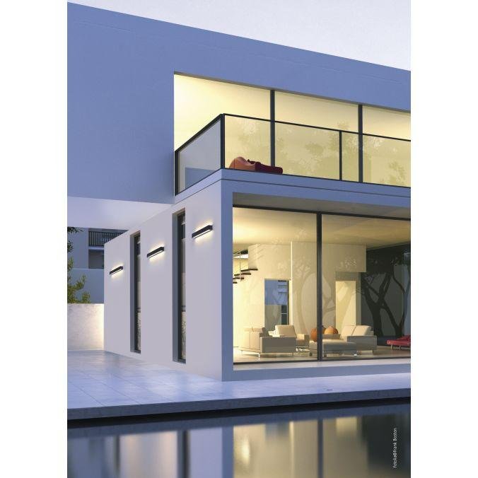 Obdélníková venkovní nástěnná LED lampa přesvědčí jednoduchým a moderním designem. Odlévané antracitové svítidlo je dodáváno s trvale instalovaným LED světelným zdrojem a vytváří příjemnou atmosféru s teplou bílou barvou. Třída ochrany IP44 chrání lampu před stříkající vodou a může být proto umístěna ve vašem venkovním prostoru. Svítidlo vyzařuje nahoru a dolů, čímž reprodukuje dva krásné paprsky světla. Svítidlo je díky použité technologii LED mimořádně energeticky účinné a přesvědčuje nízkou teplotou a dlouhou životností.