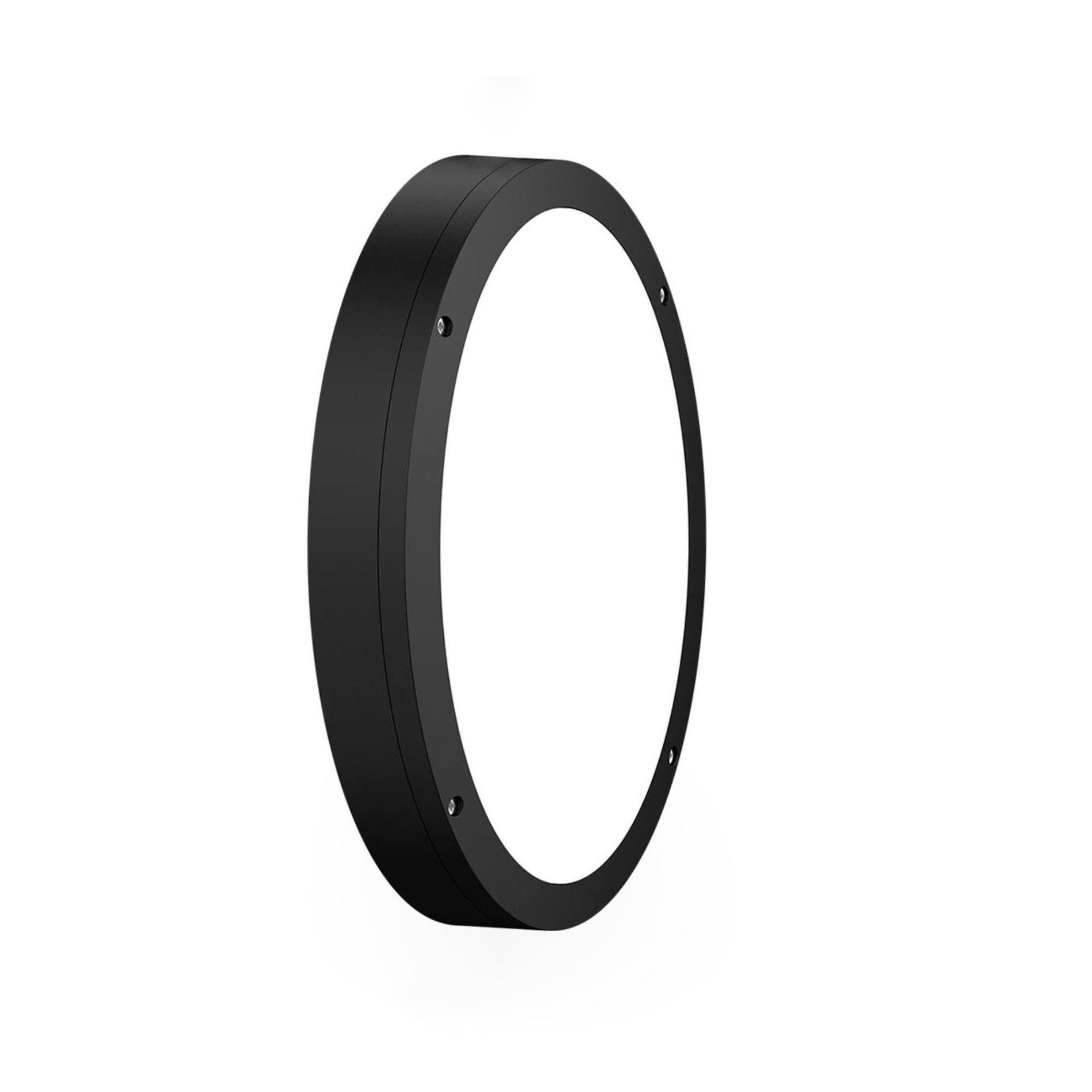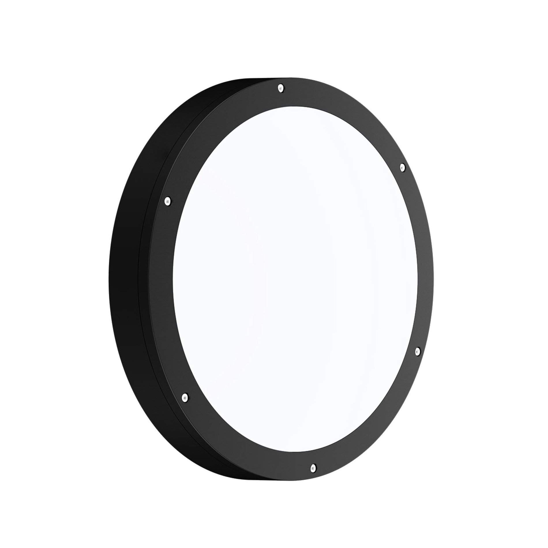 Kruhové tělo svítidla s černým povrchem (RAL9005) je vyrobeno z odolného plastu, optická část z polykarbonátu s opálovým difuzorem. Konstrukce splňuje vysoké nároky na mechanickou odolnost (IK10) a ochranu proti vniknutí vody a prachu (IP65). Výrazný rámeček a matný difuzor zajišťují neutrální vzhled vhodný pro technické i veřejné prostory.