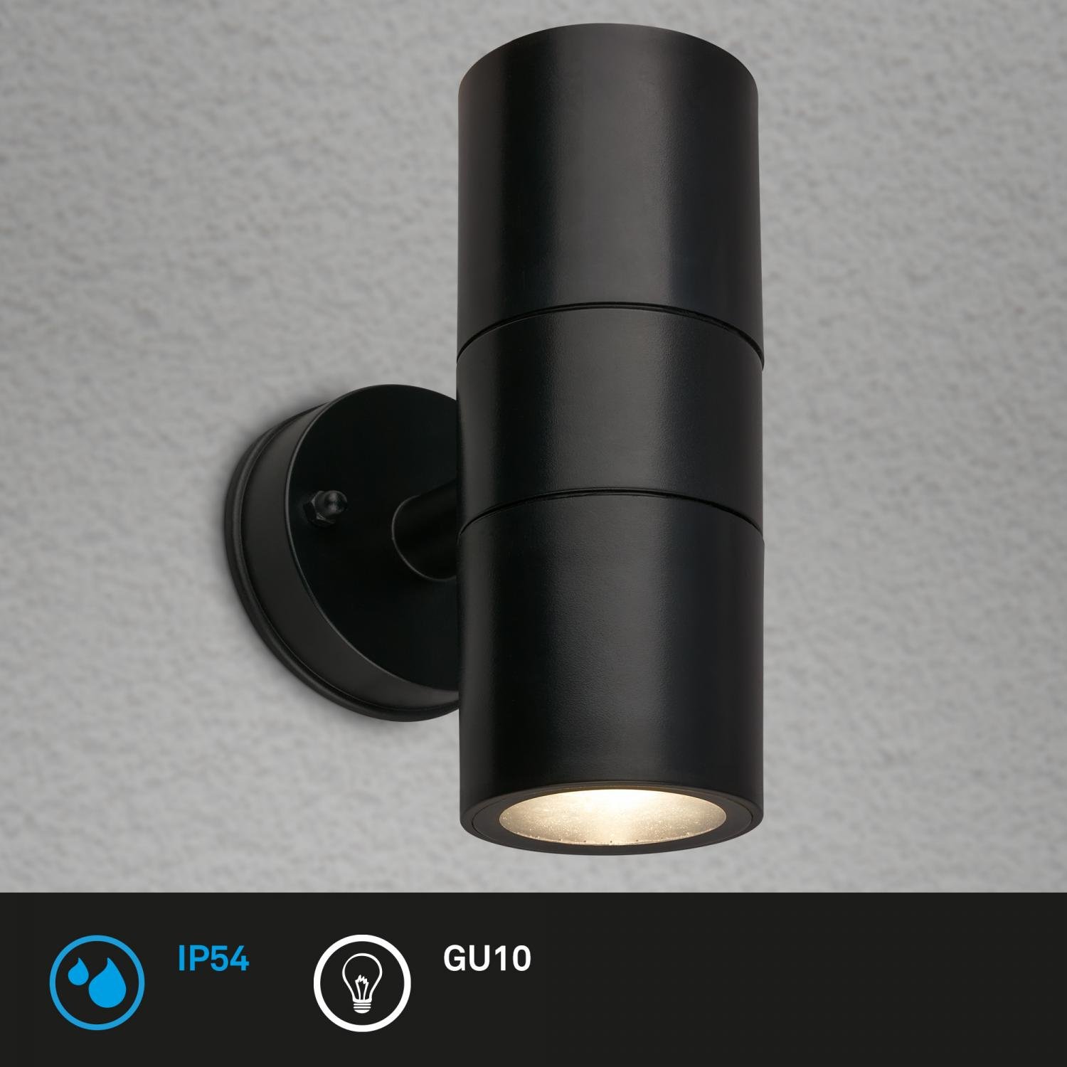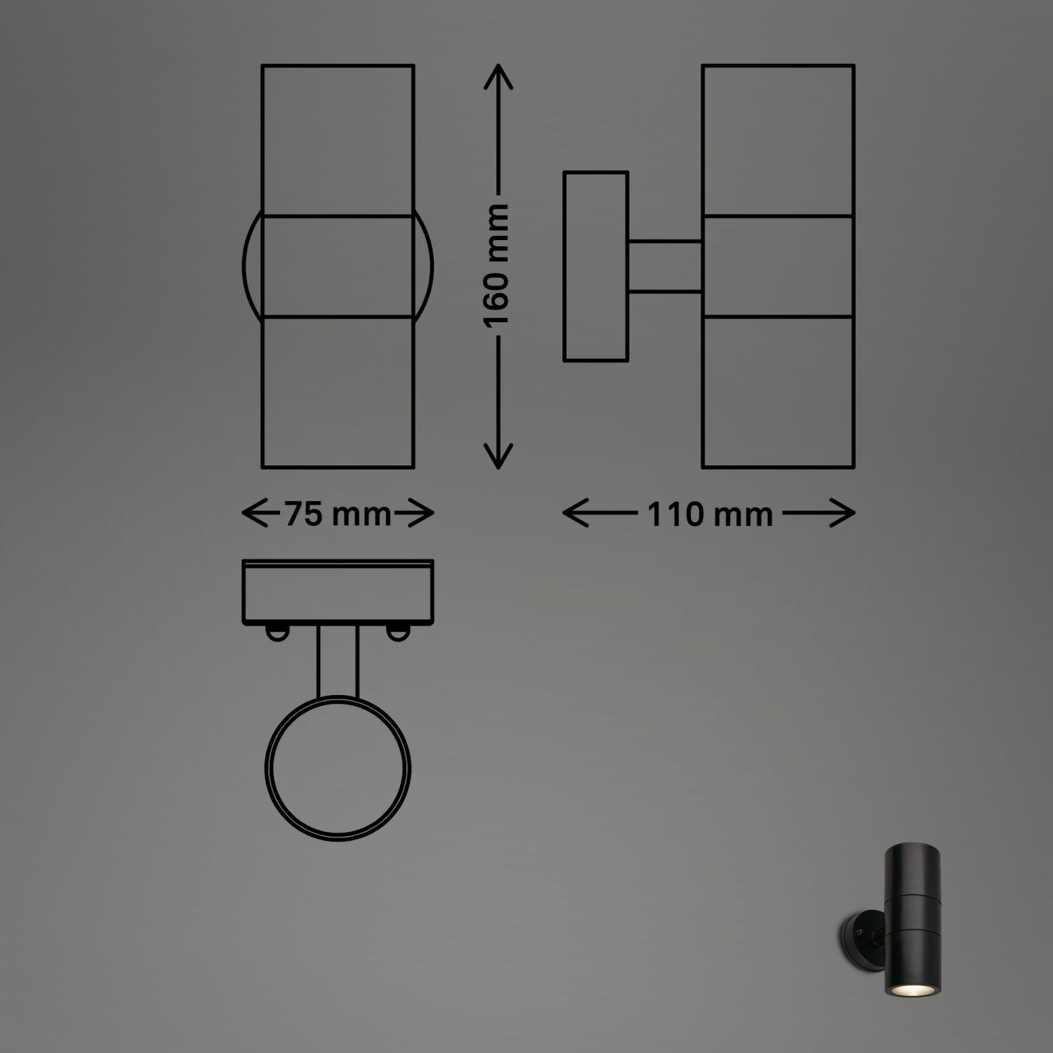 Venkovní nástěnné svítidlo, IP54 voděodolné a prachotěsné, Up/Down, 16cm výška, černá - BRILO