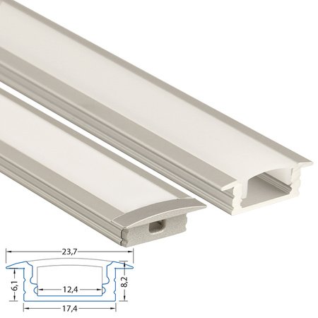 Vestavný hliníkový profil VS, 24x8 mm, včetně mléčného difuzoru, 2 m