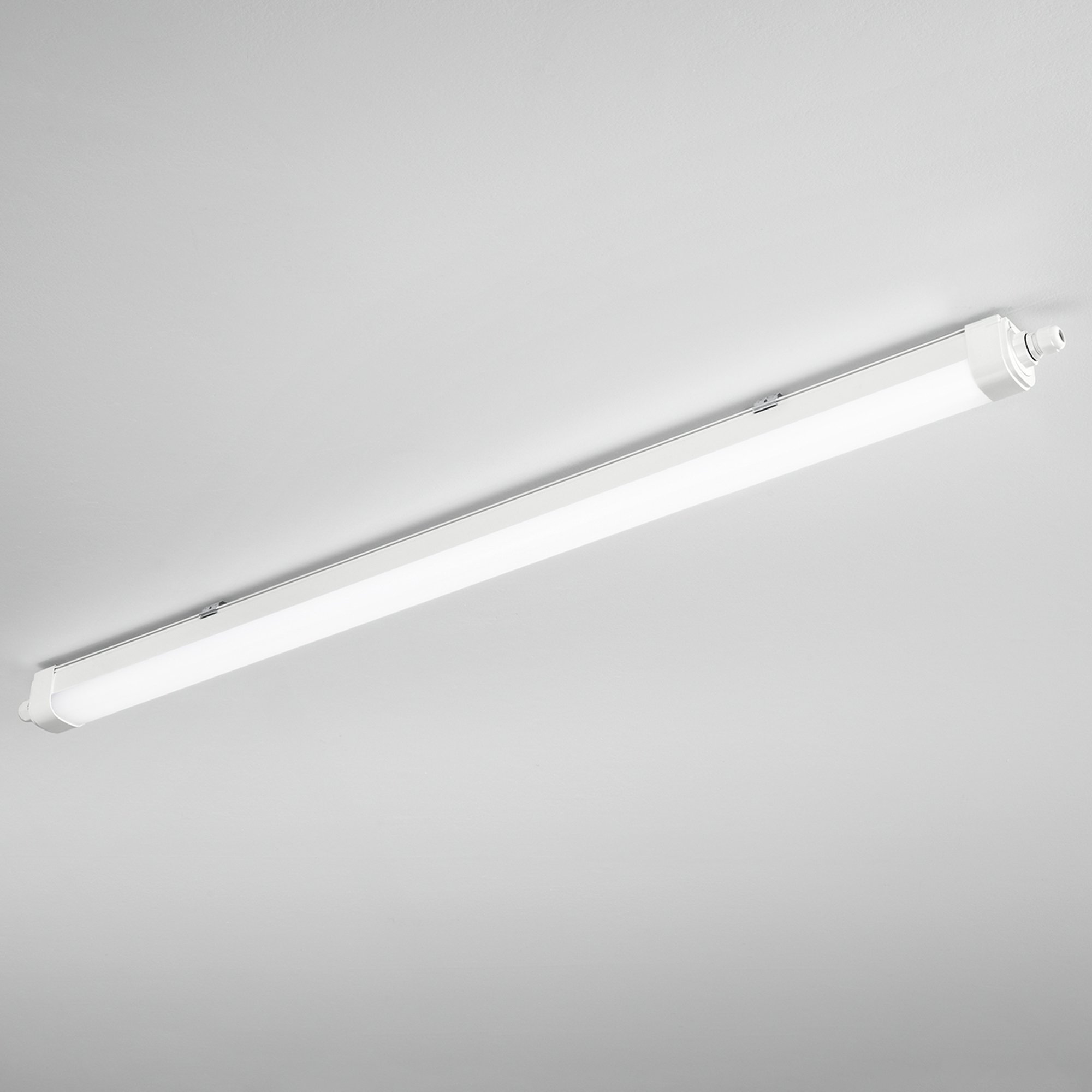 Vlhkotěsná stropní LED svítidlo Rubis (bílé, se senzorem) 36 W, 4900 lm, CCT 3000 / 4000 / 6500 K, IP65, 1200 x 58 x 62 mm - FANEUROPE