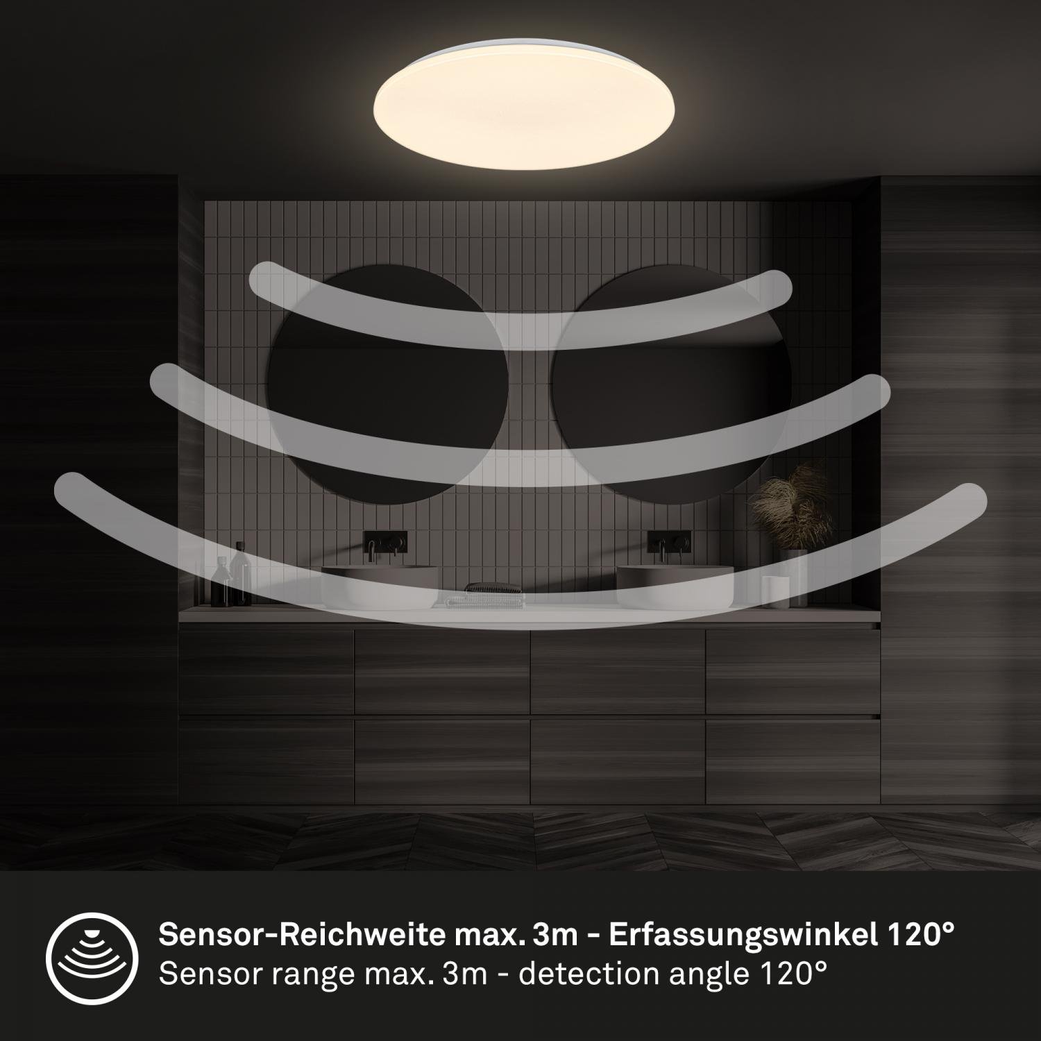 Walk LED stropní svítidlo IP54, 3m dosah čidla, pohybové čidlo, bílé - BRILO