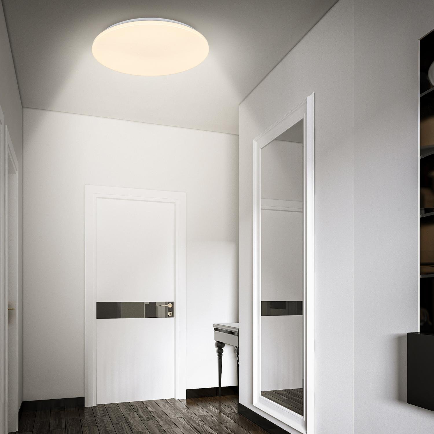 Rozměry Ø350 x 55 mm umožňují instalaci i do menších prostor, kde je potřeba zachovat čistotu linií a efektivní využití světla. Svítidlo je ploché, elegantní a nepůsobí rušivě ani v minimalistických interiérech.